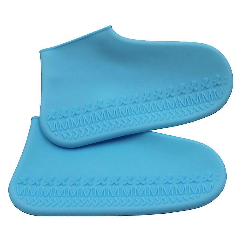 1 Pair Silicone Rainproof Shoes Cover Unisex Thicken Shoes Protector Wearproof Anti-slip Rainshoes Cover (Blue, Size M)