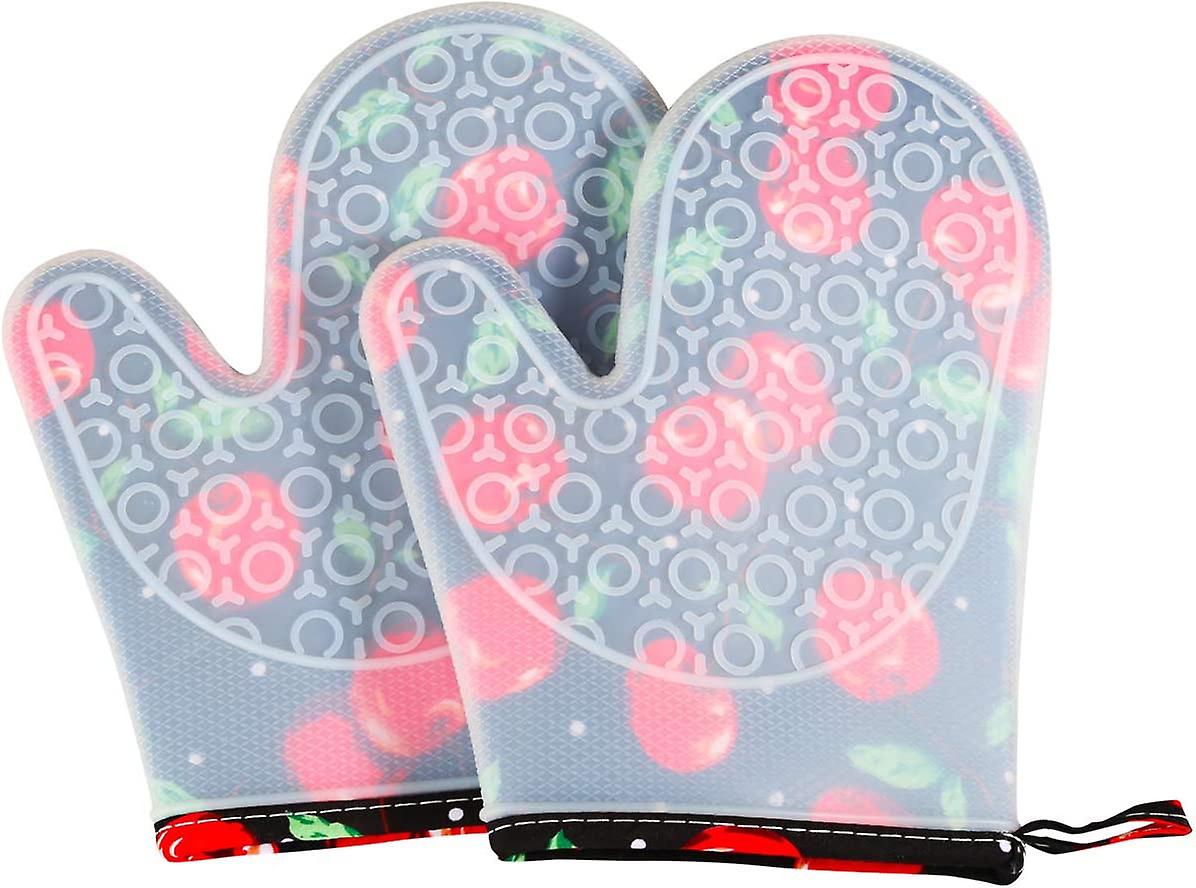 1 Pair Non Slip Silicone Oven Mitts with Printing Cotton Lining Kitchen Gloves for Cooking Baking Heat Resistant Up to 500 260