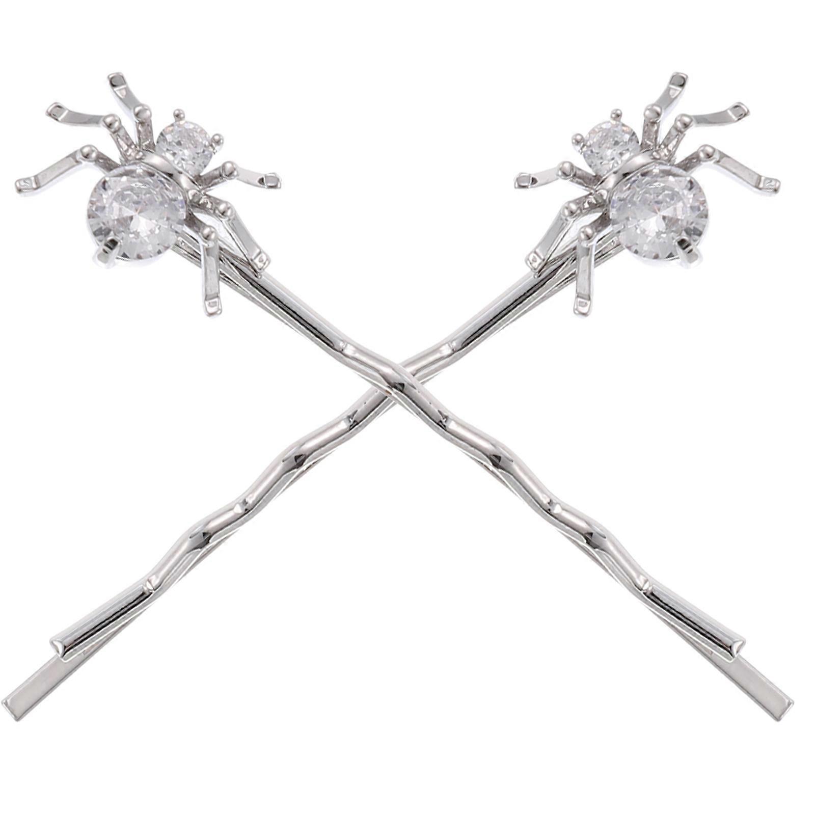 1 Pair of Funny Zircon Spider Hairpins Simple Hairpins Headdress Barrettes Hair Accessories for Girl Woman Lady(White Golden)
