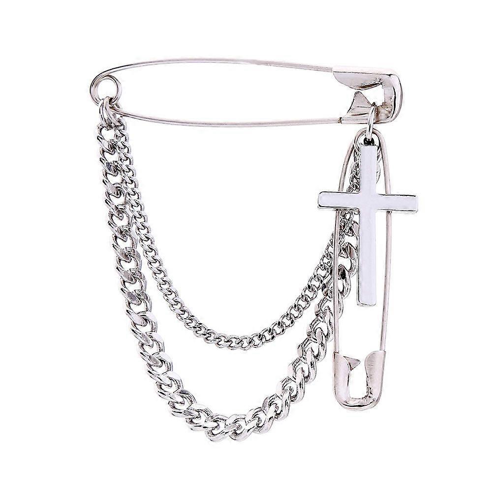 1Pc Creative Cross Brooch Vintage Christian Cross Chain Lapel Crucifix Scarf Brooch Breastpin