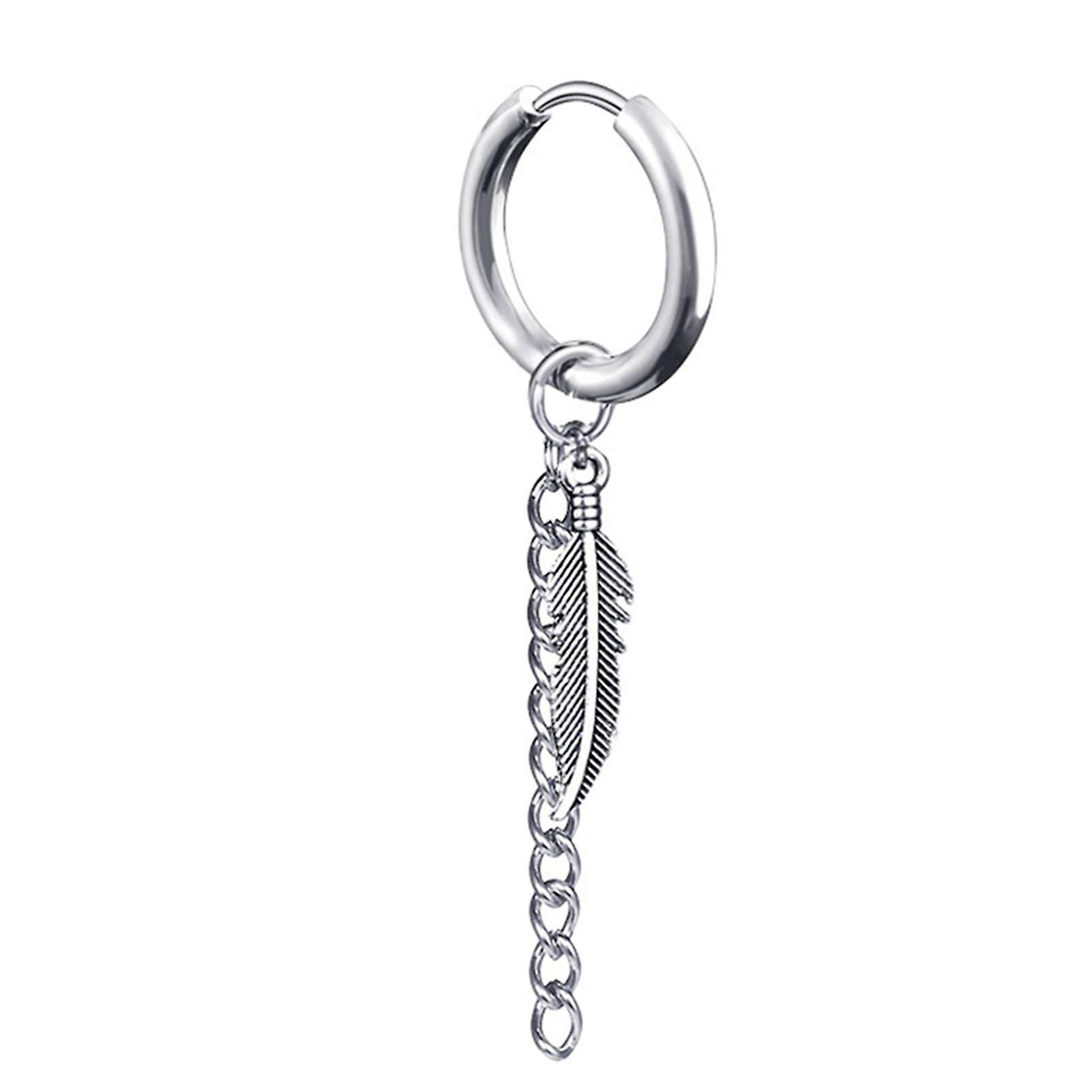 1Pcs Fashion Long Chain Ear Clip Stainless Steel Piercing Loop Hoop Earring for Men
