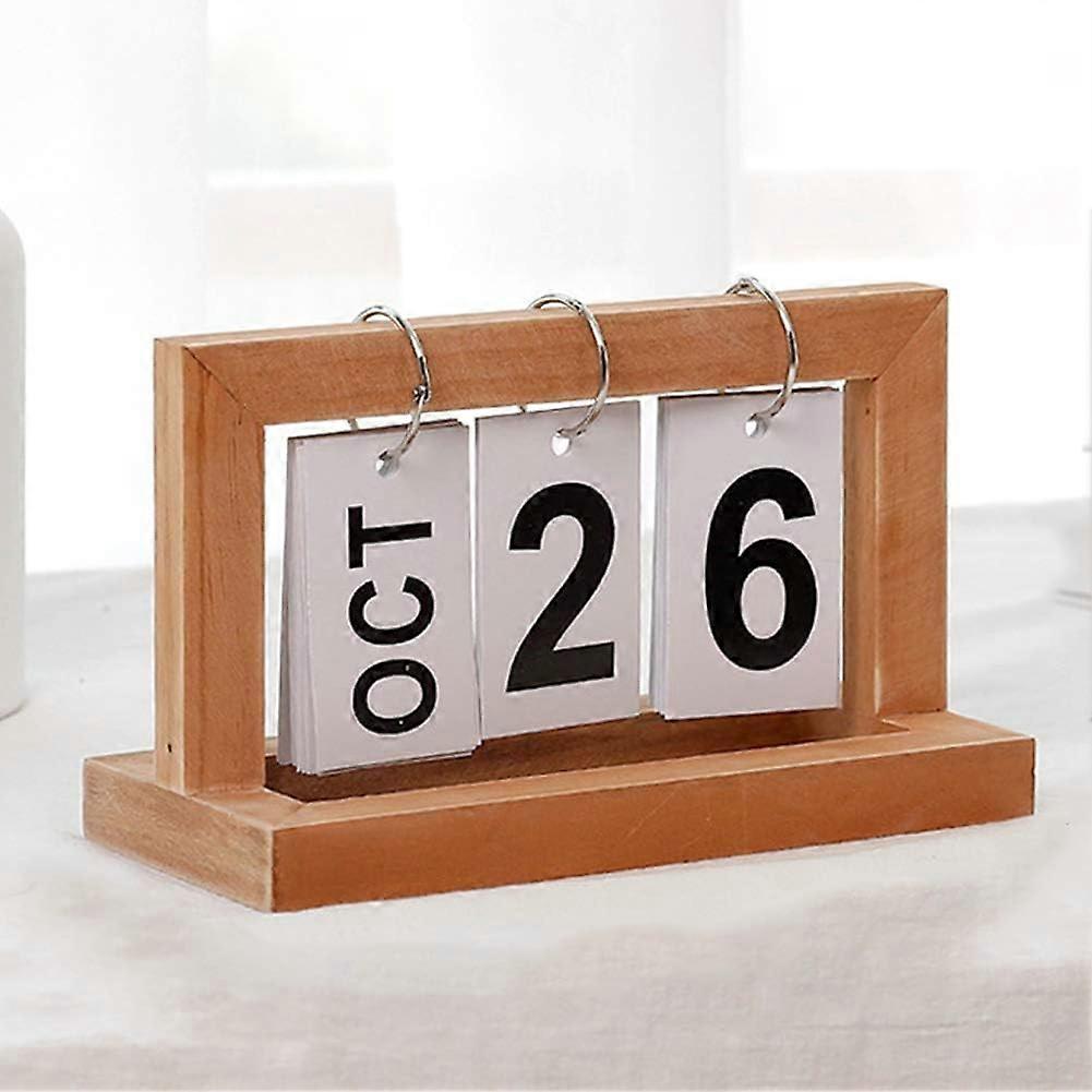 1pc Wooden Vintage Perpetual Calendar with Flip Handmade Desktop Antique Wooden Calendar Office Decor (Wood )