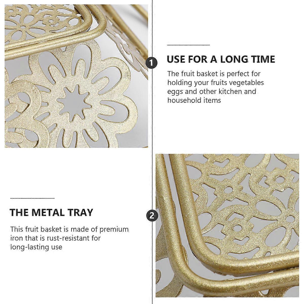 1Pc Fruit Basket Modern Simple Metal Crafts Fruit Tray for Home Dessert Store Golden (Size )