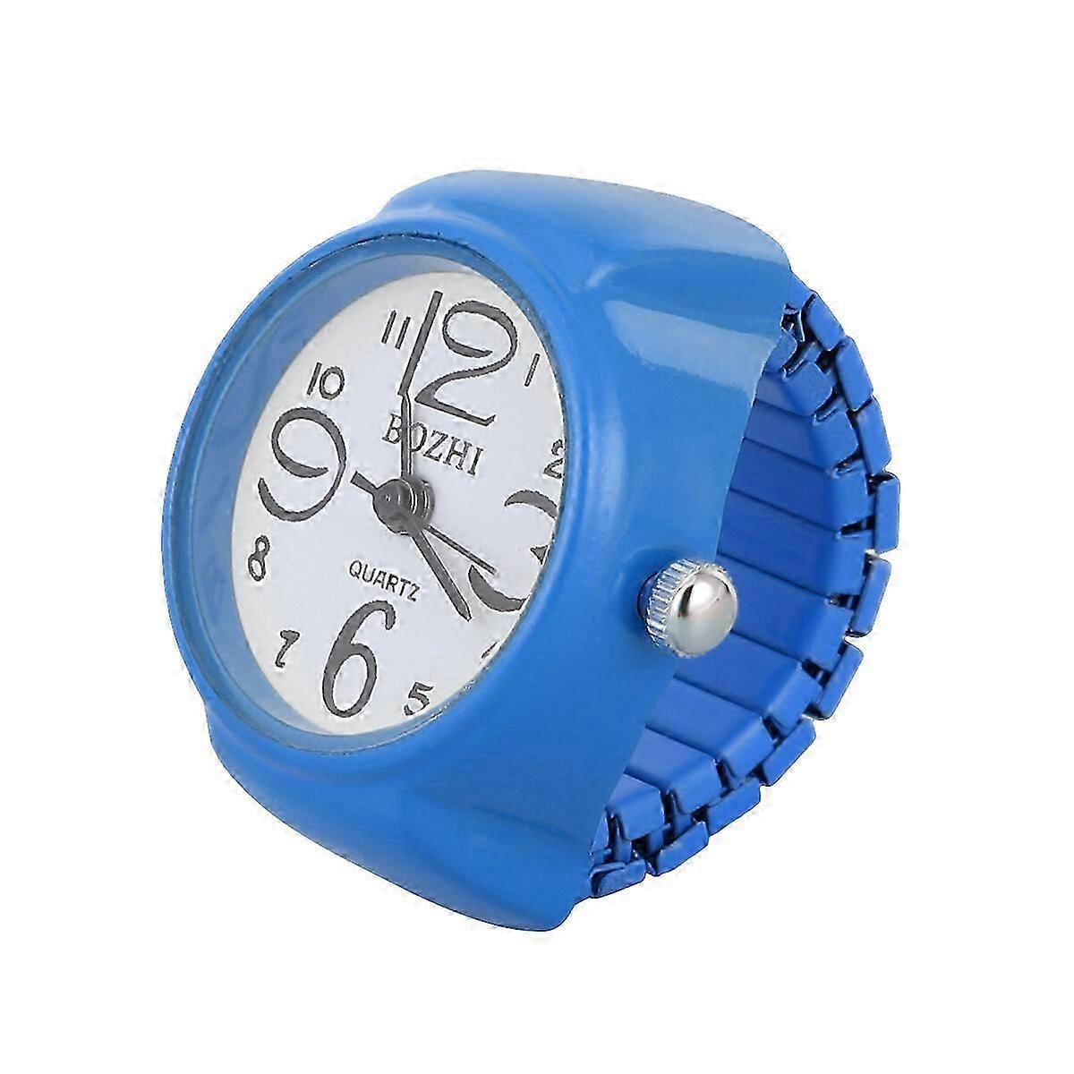 1Pc Personality Unisex Watch Shaped Finger Ring Fashion Exquisite Quartz Watch Ring (Blue)