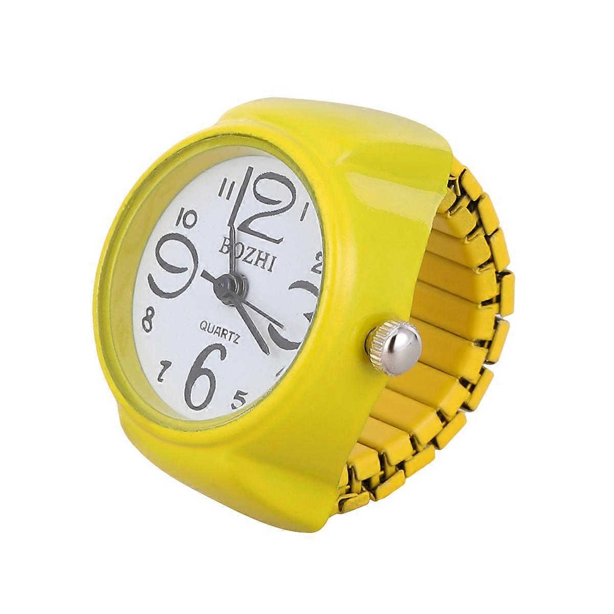 1Pc Personality Unisex Watch Shaped Finger Ring Fashion Exquisite Quartz Watch Ring (Yellow)