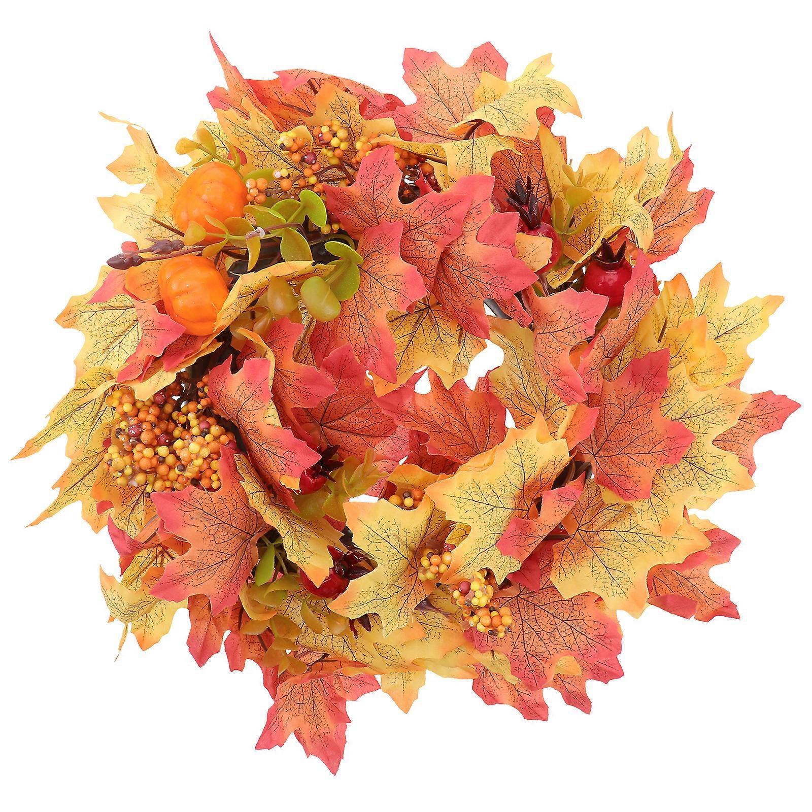 1Pc Halloween Thanksgiving Maple Leaf Pumpkin Door Ornament Berry Wreath Orange