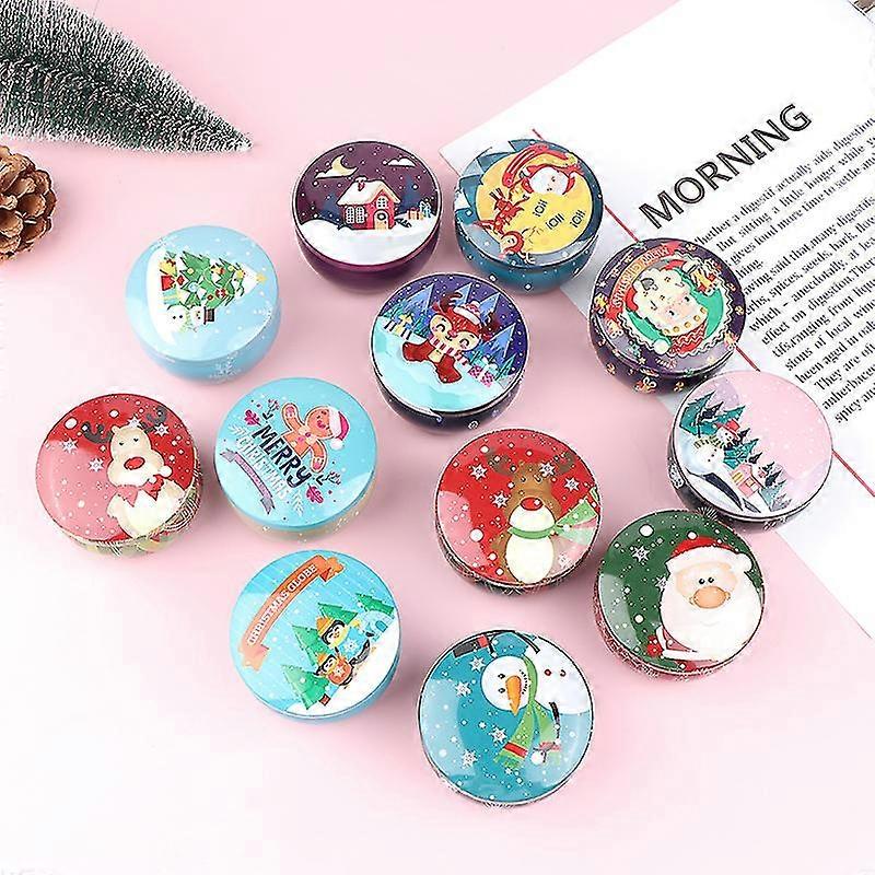 1 Pcs Christmas Tinplate Round Candy Tin Can Candle Jars With Lid Candle Container Empty Box Cookie Candy Storage Gift Case--K