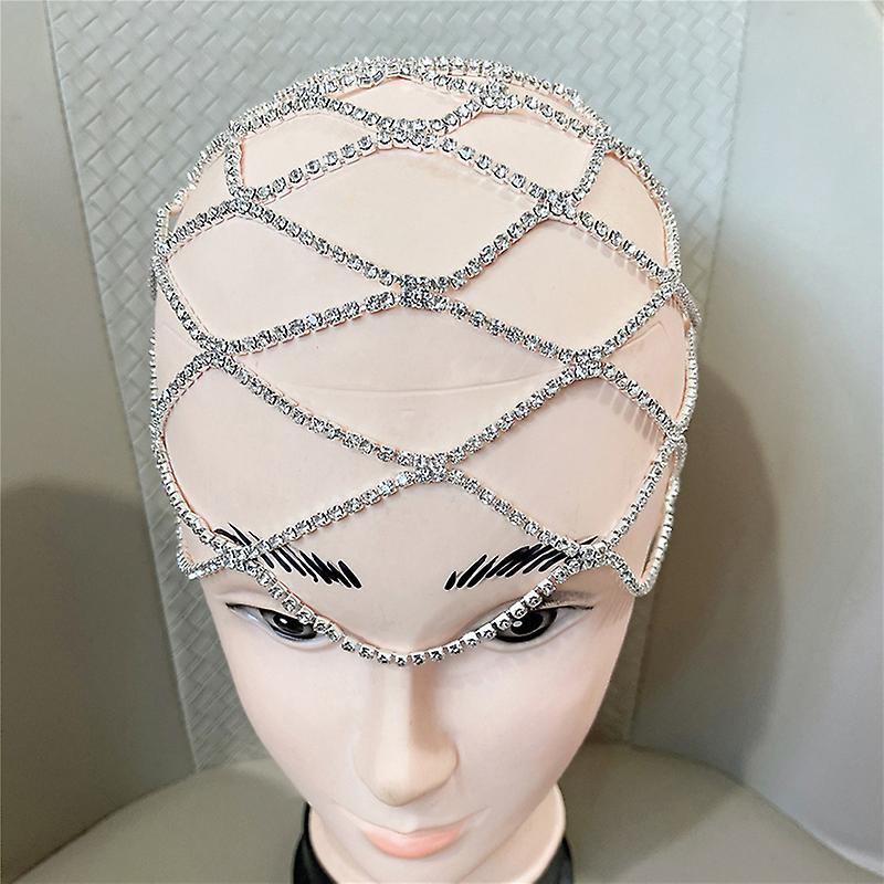 1pc Crystal Headband Head Cap Hollow Rhinestone Mesh Headpiece Jewelry