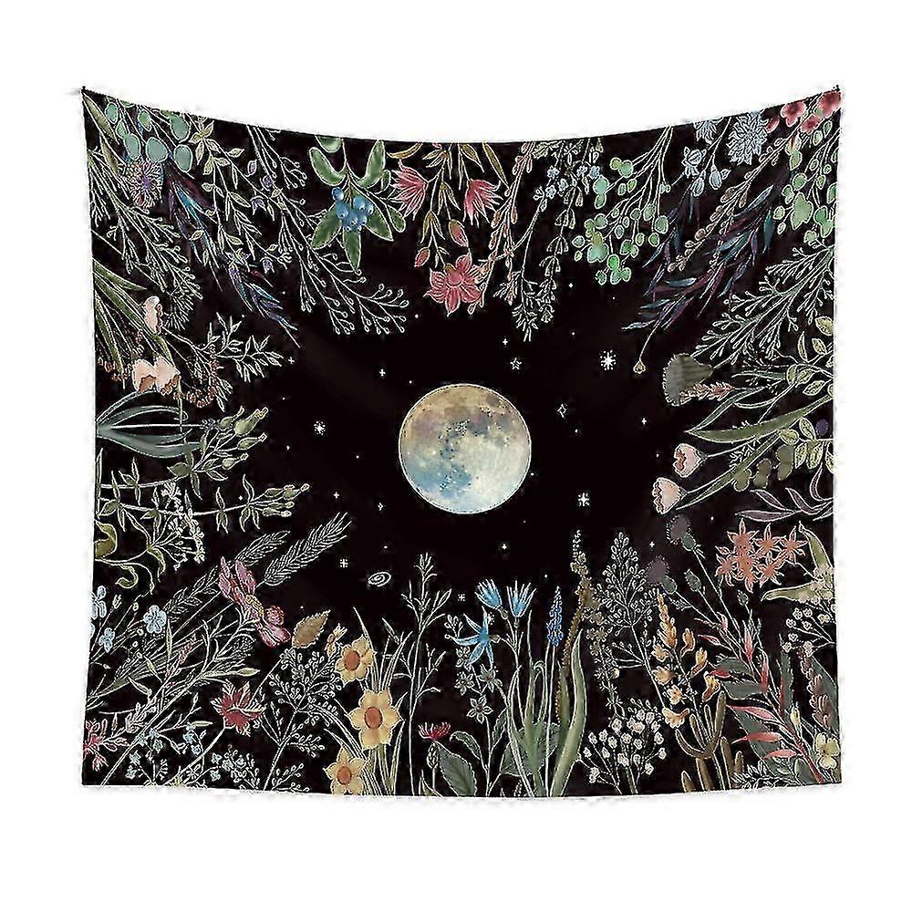 1PC Wall Tapestry, Psychedelic Wall Hanging, Star Sky Moon Flowers, Wall Decor for Living Room Bedroom, Office, 130 x 150cm