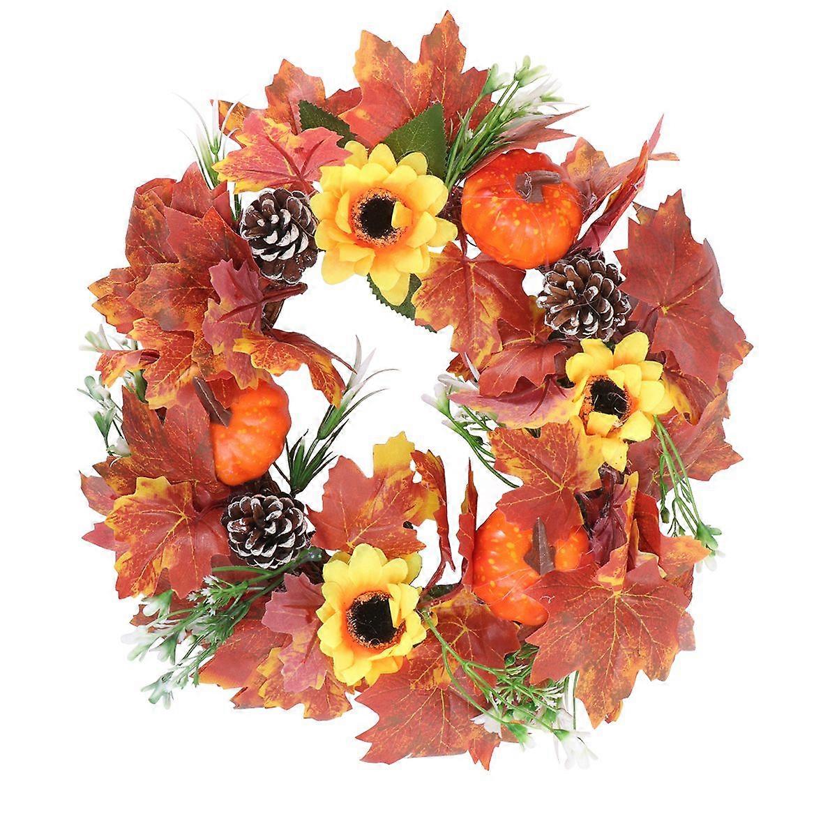 1Pc Halloween Wreath Imitation Sunflower Autumn Maple Leaf Pattern Pumpkin Garland Orange (30cm)