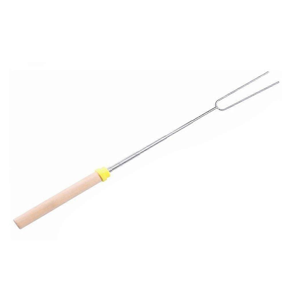 1 Pc Hot Dog Roasting Fork Stainless Steel Telescoping Barbecue Fork Wooden Handle Marshmallow Roasting Stick Sausage Skewer (Random Color)
