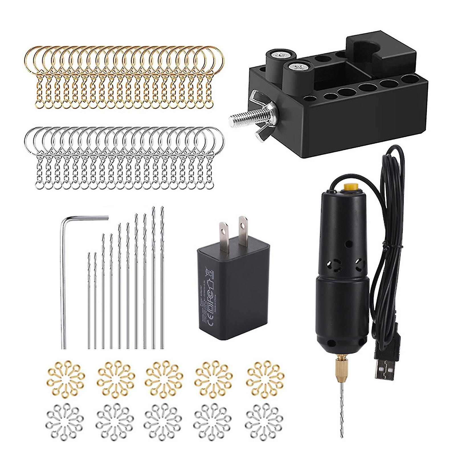 Description: Our USB mini electric drill can be used for aluminium product, wood, pearl, bead drilling. Powerful motor design ensures high rotation speed and efficient drilling. Multi specifications available design allows you to choose as needed. It is constructed of abs material. The length of the product is 12.3cm, the width is 3.5cm. It is suitable for drilling. Item Name: Mini Electric Drill Material: ABS Voltage: 5V Interface: USB Motor Type: Brushed Motor Features: High Strength, Good Toughness, Wear Resistant Size Details: LxW: 12.3cm x 3.5cm/4.84" x 1.38"(Approx.) Notes: Due to the light and screen setting difference, the item's color may be slightly different from the pictures. Please allow slight dimension difference due to different manual measurement. Package Includes: Style A: 1 x Electric Drill With USB Interface (Without Wrench) Style B: 1 x Electric Drill 1 x Wrench 3 x Drill Bits Style C: 1 x Electric Drill 1 x Wrench 10 x Drill Bits Style D: 1 x Electric Drill 1 x Wrench 10 x Drill Bits 50 x Gold Nails 50 x Silver Nail Style E: 1 x Electric Drill 1 x Wrench 10 x Drill Bits 50 x Gold Nails 50 x Silver Nail 20 x Gold Key Rings 20 x Silver Key Rings 1 x Small Clamping Bed Style F: 1 x Electric Drill 1 x Wrench 10 x Drill Bits 1 x Plug Style G: 1 x Electric Drill 1 x Wrench 10 x Drill Bits 50 x Gold Nails 50 x Silver Nail 1 x Plug Style H: 1 x Electric Drill 1 x Wrench 10 x Drill Bits 50 x Gold Nails 50 x Silver Nail 20 x Gold Key Rings 20 x Silver Key Rings 1 x Small Clamping Bed 1 x Plug
