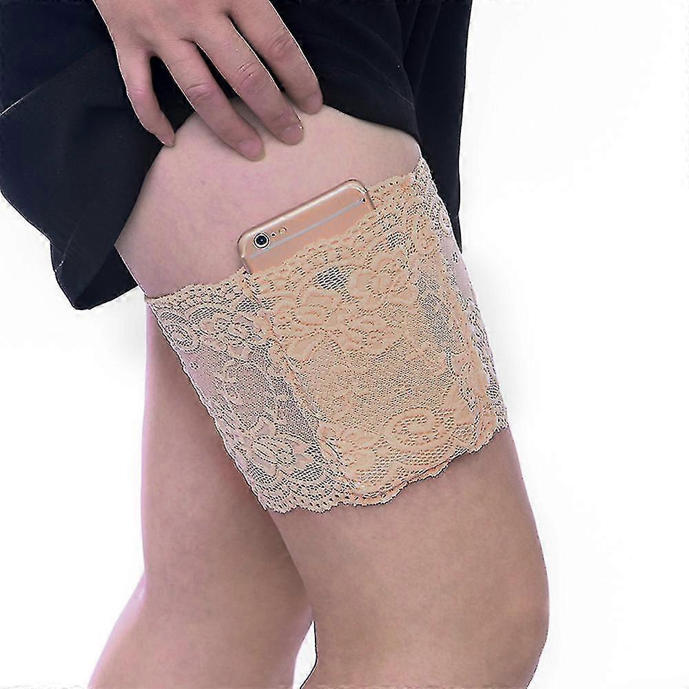1 Pcs Women Lace Elastic Sock Cover Non-slip Thigh Cell Phone Pocket
