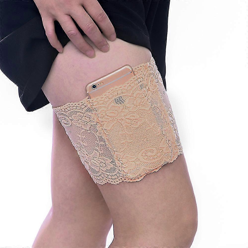 1 Pcs Women Lace Elastic Sock Cover Non-slip Thigh Cell Phone Pocket