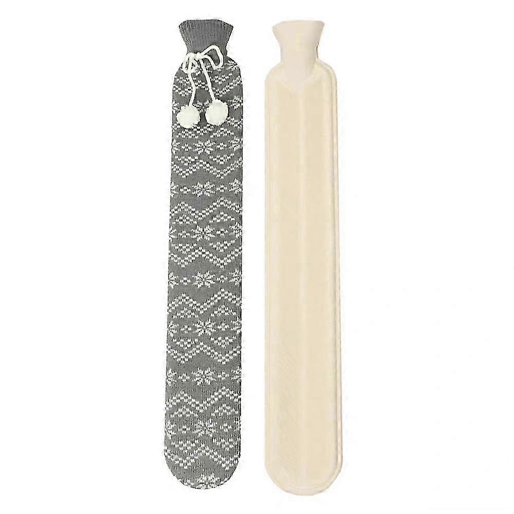 1L Long Hot Water Bottle Bag Rubber with Warm Knitted/Faux Fur Removable Cover Winter Warmer