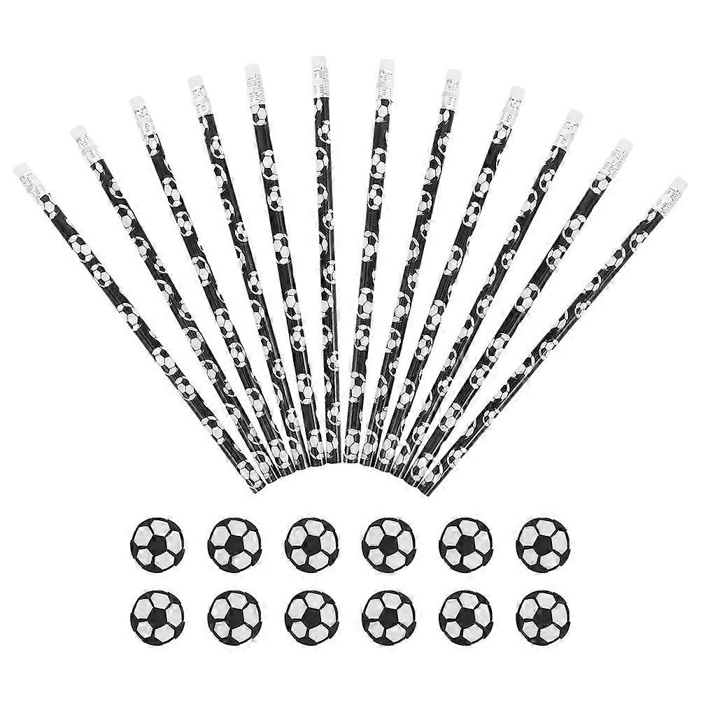 1 Set Soccer Themed Pencils with Erasers Wooden Football Pencils for School, Office & Sports Party Favors