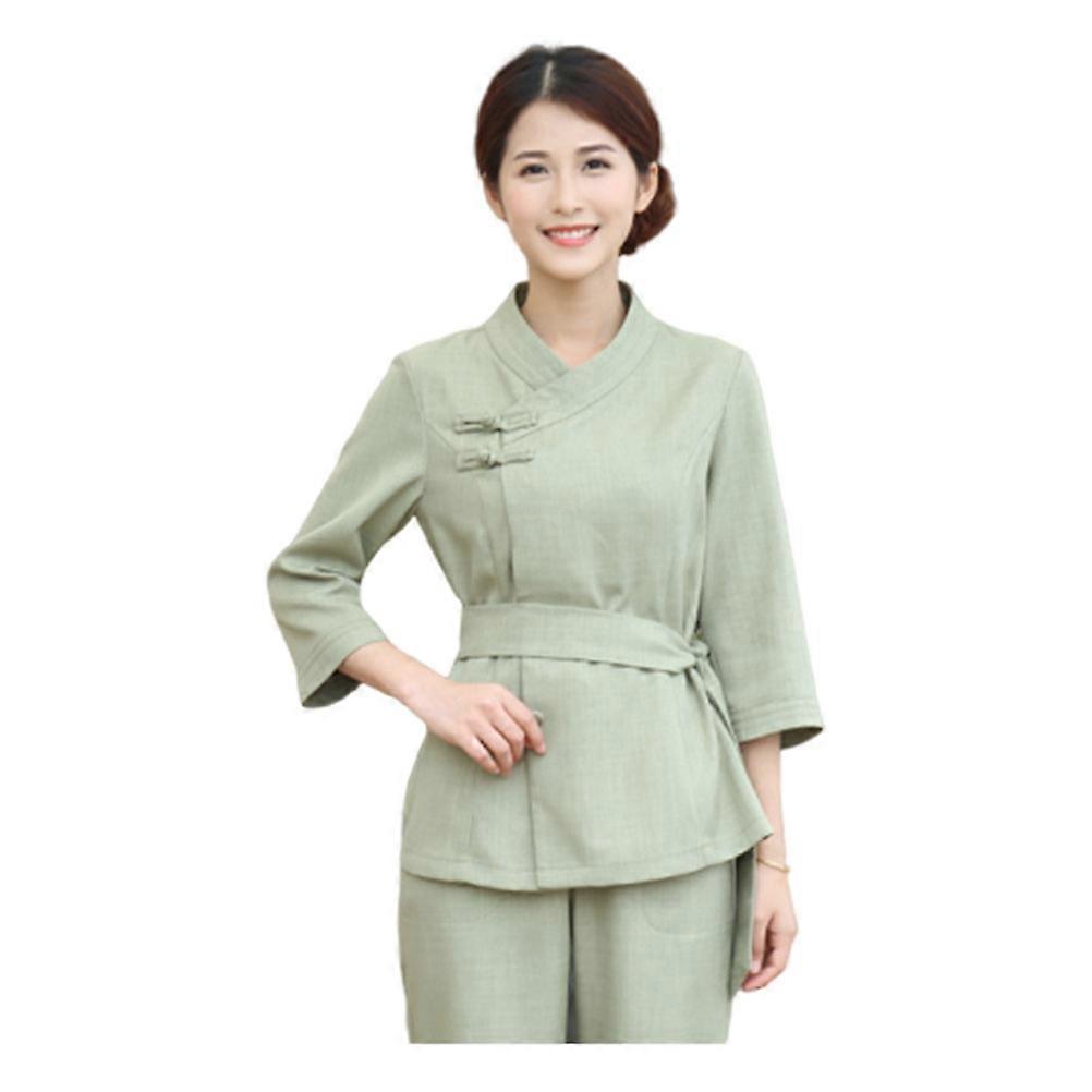 Description This clothes can not only be used in the salon, but also can be applied at beauty salon.This haircut clothes is well made of premium material for durable and practical use. It is comfortable, which is perfect for home and salon use. This product can be given as a great gift for your friends and families. They will be very happy. Features - Color: Green. - Material: Polyester, Flax, Chloroprene. - M: 158-163cm/62-64 inch (Height); 94cm/37 inch (Bust); 38cm/14.9 inch (Shoulder Width); 50-55kg (Weight); 36cm/14.17 inch (Sleeve Length); 96cm/37.79 inch (Hips); 67cm/26.37 inch (Waist); 100cm/39.37 inch (Pants Length). - L: 163-168cm/64-66 inch (Height); 98cm/38.58 inch (Bust); 39cm/15.35 inch (Shoulder Width); 55-60kg (Weight); 37cm/14.56 inch (Sleeve Length); 100cm/39.37 inch (Hips); 72cm/28.34 inch (Waist); 102cm/40.15 inch (Pants Length). - XL: 168-173cm/64-68 inch (Height); 102cm/40.1 inch (Bust); 40cm/15.74 inch (Shoulder Width); 60-65kg (Weight); 37cm/14.56 inch (Sleeve Length); 104cm/40.9 inch (Hips); 76cm/29.9 inch (Waist); 104cm/40.9 inch (Pants Length). - XXL: 173-180cm/68-70 inch (Height); 106cm/41.7 inch (Bust); 41cm/16 inch (Shoulder Width); 65-70kg (Weight); 38cm/14.9 inch (Sleeve Length); 108cm/42.5 inch (Hips); 80cm/31.4 inch (Waist); 104cm/10.9 inch (Pants Length). - XXXL: 180-185cm/70-72 inch (Height); 110cm/43.3 inch (Bust); 42cm/16.5 inch (Shoulder Width); 70-75kg (Weight); 38cm/14.9 inch (Sleeve Length); 112cm/44.09 inch (Hips); 84cm/33.07 inch (Waist); 106cm/41.73 inch (Pants Length). - This product can be given as a great gift for your friends and families. They will be very happy. - Made of material, it is durable and long lasting use. You can safe to use it. - This product is small, light, and easy to carry, so you can take it with you wherever you go. - Covered cuffs design, wear-resistant, highlights the temperament. - Neat neckline design, and Chinese style elements, comfortable and fashionable.Package List1 x coat 1 x pants