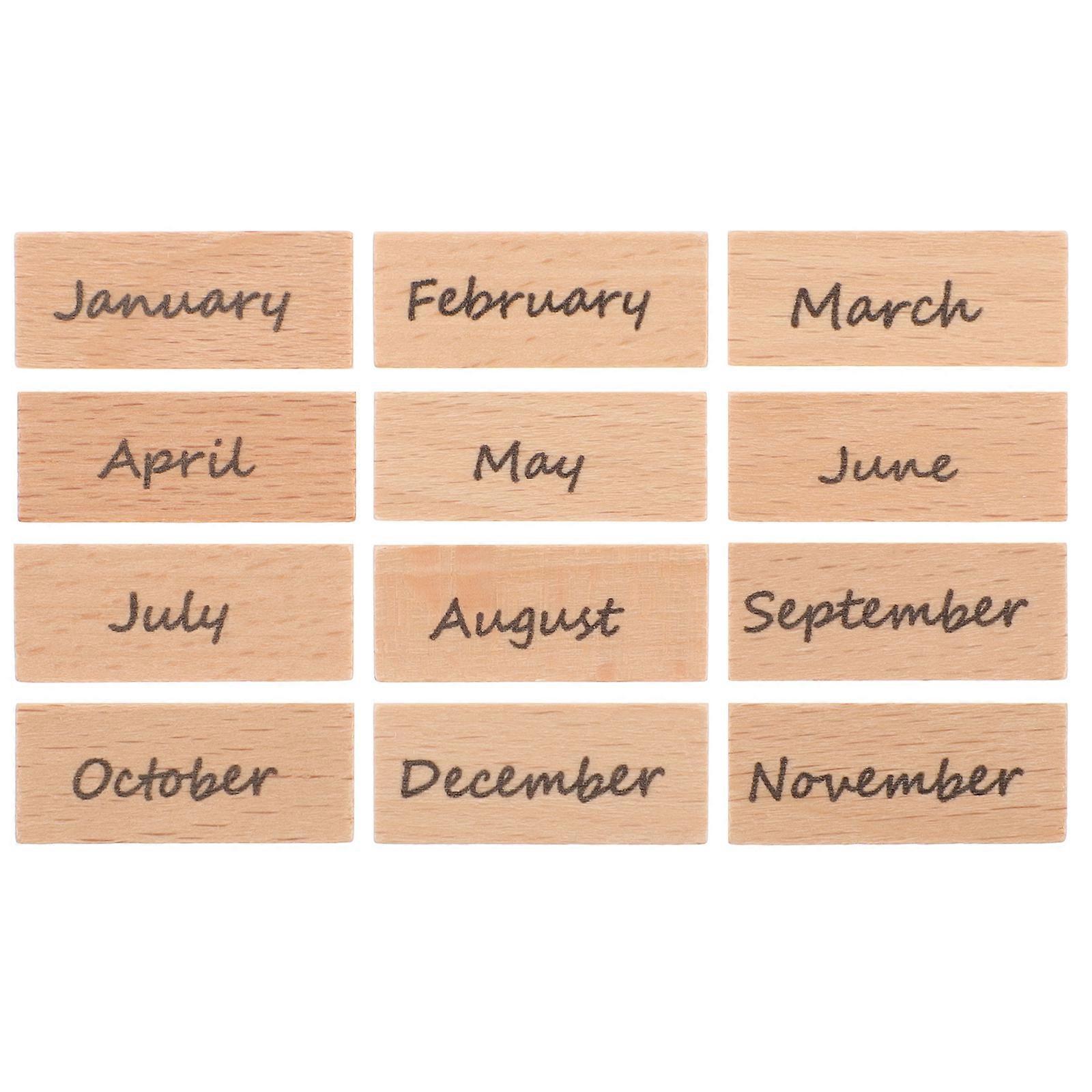 1 Set Wooden Stamps Month Patterns Craft DIY Wood Rubber Stamps Party Decoration