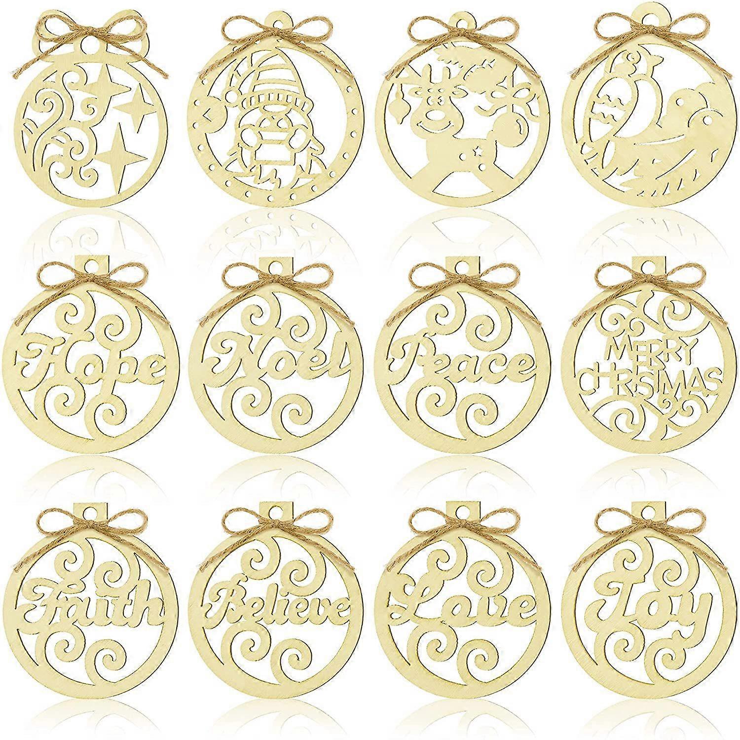 Description Are you looking for some unique and delicate decorations for your Christmas party? These wooden cutouts are your best choice. You can DIY hanging ornaments for your home. It is your best choice for Christmas decoration. Features -Color:As Shown-Material:Wood- Size: 9.00X8.00X0.50cm/3.54X3.14X0.20in - These unfinished wooden ornaments are not only beautiful decorations for Christmas, windows or fireplaces, but also wonderful gifts.- Can be used to decorate your Xmas tree, wall, fireplace and more., after finished DIY making.- Great ornament for Christmas, Weddings, Birthdays, Bridal Showers, New Years, and etc.- Exquisite workmanship, reasonable structure, professional and practical, can bring you convenience.- It is cute design, but very practical in use, which brings great convenience to you. The Christmas style wooden slices decorations are Xmas party, home indoor decor and scene layout use.Packing list: 12 hanging wood cutouts 1 rope