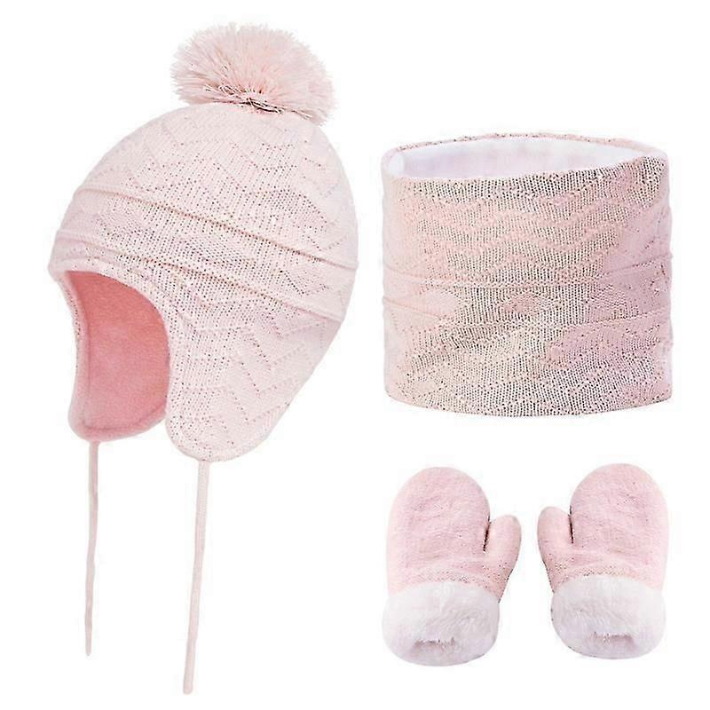 1 Set Hat Circle Scarf Gloves Fashion Pattern Plush Ball Boys Girls Solid Color Knitted Kids Cap Set For Outdoor