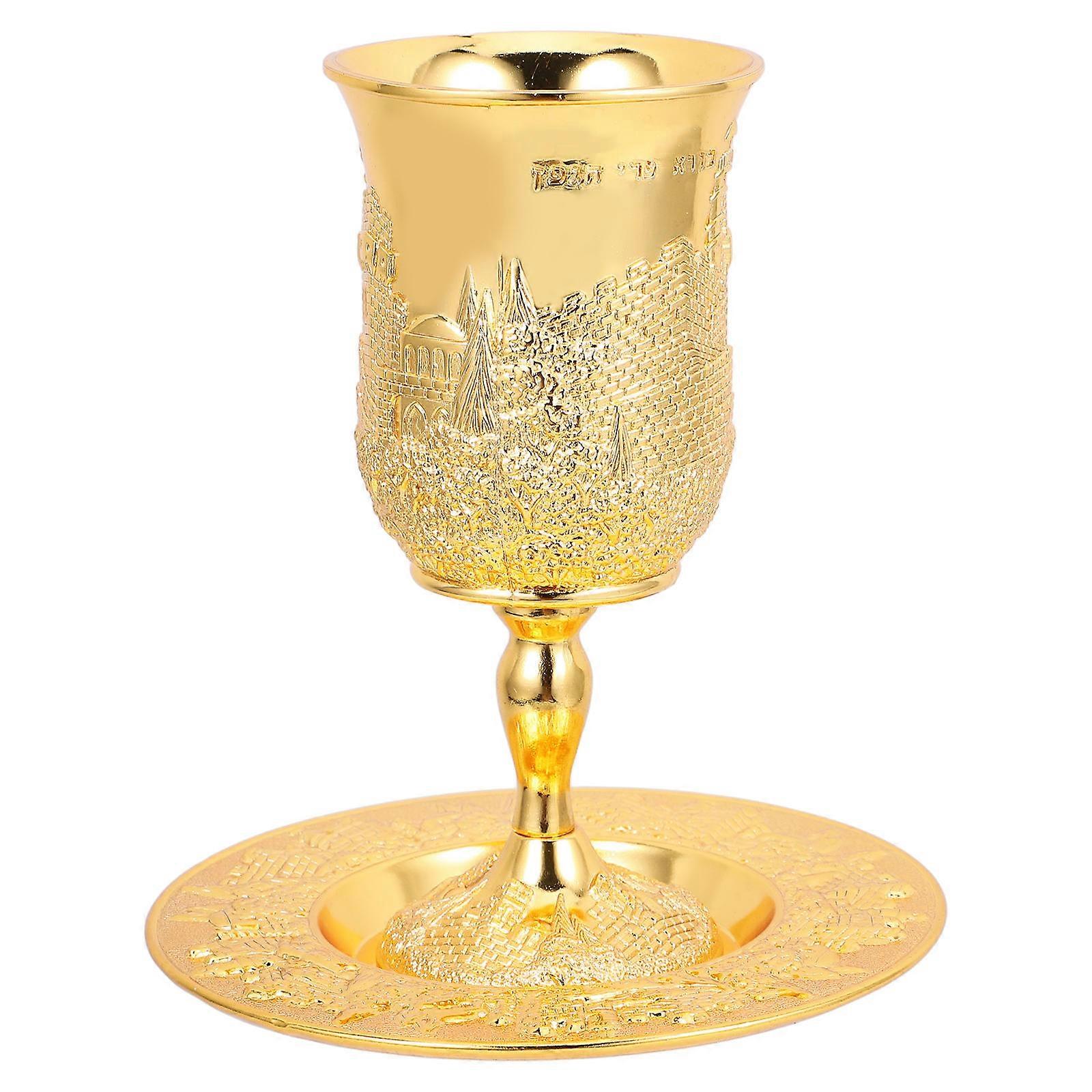 1 Set Kiddush Cup with Saucer Metal Judaica Shabbos Wine Cup Passover Gift Option