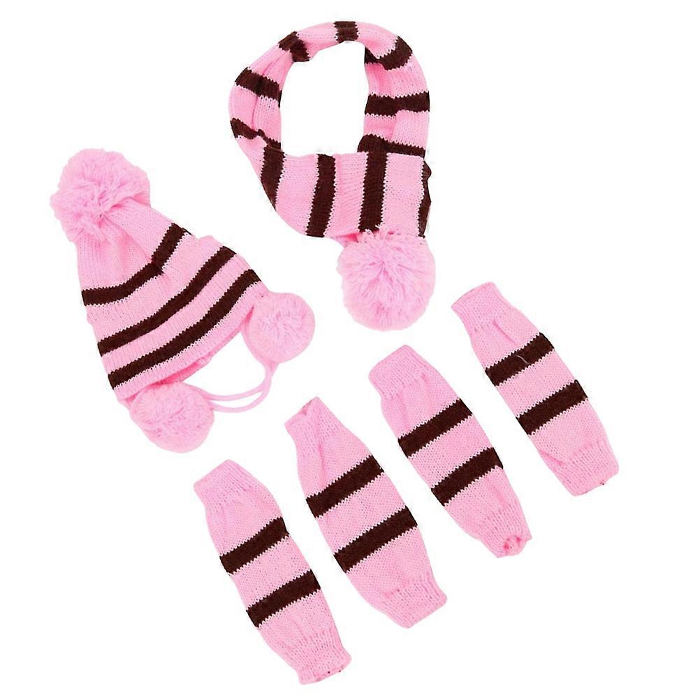 1 Set Knitted Winter Dog Scarf Hat Warm Costume Festival Stripe Clothes Accessories Size XXS Pink Brown