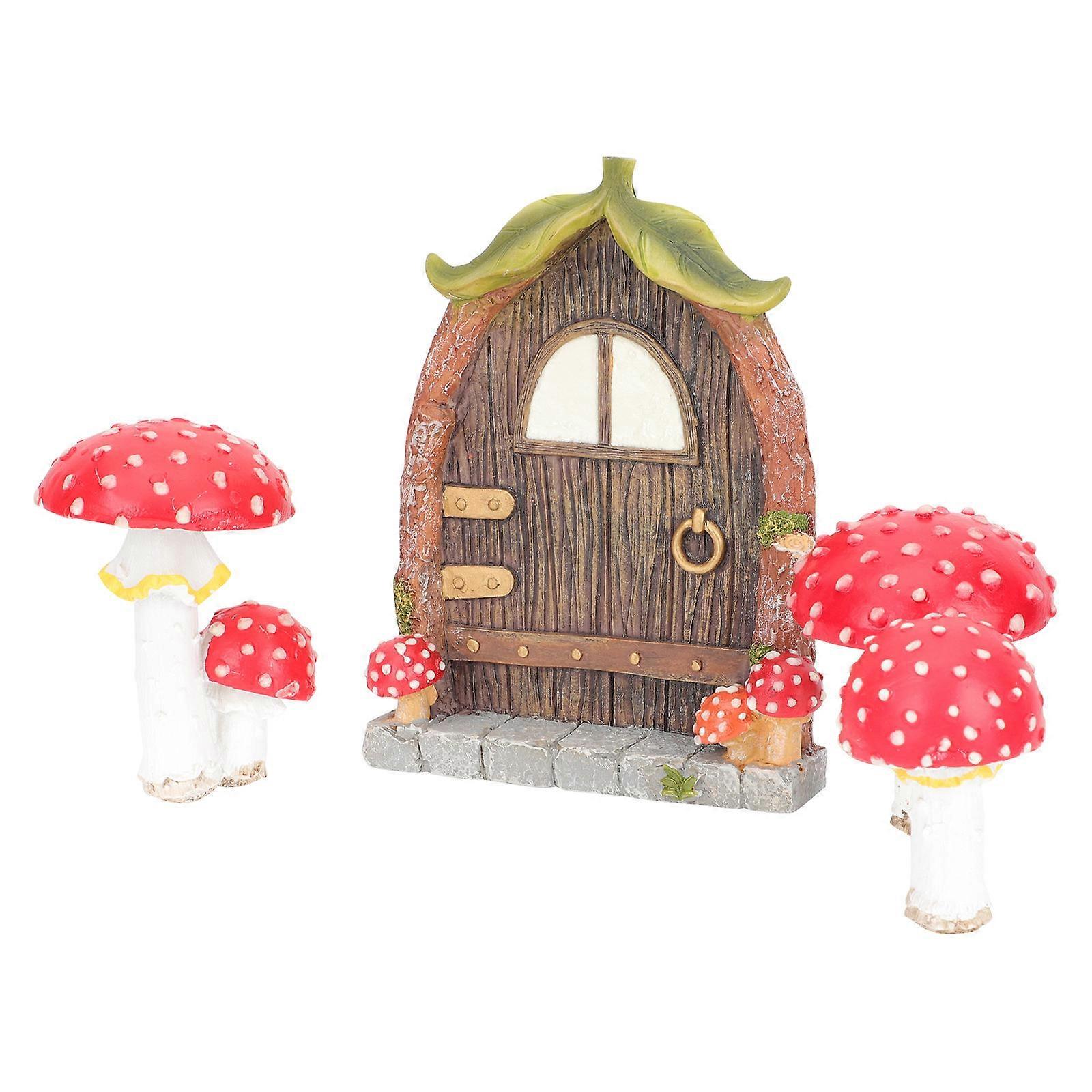 1 Set Miniature Door Mushroom Fairy Garden Decor Noctilucence Resin Ornaments for Enchanting Outdoor Displays