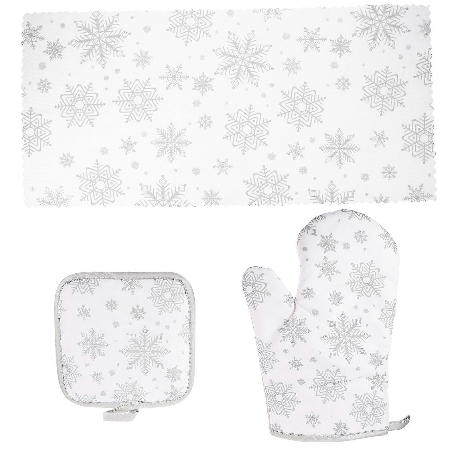 1 set of Christmas Snowflake Pattern Heat Resistant Glove Kitchen Baking Glove Pot Holder Towel