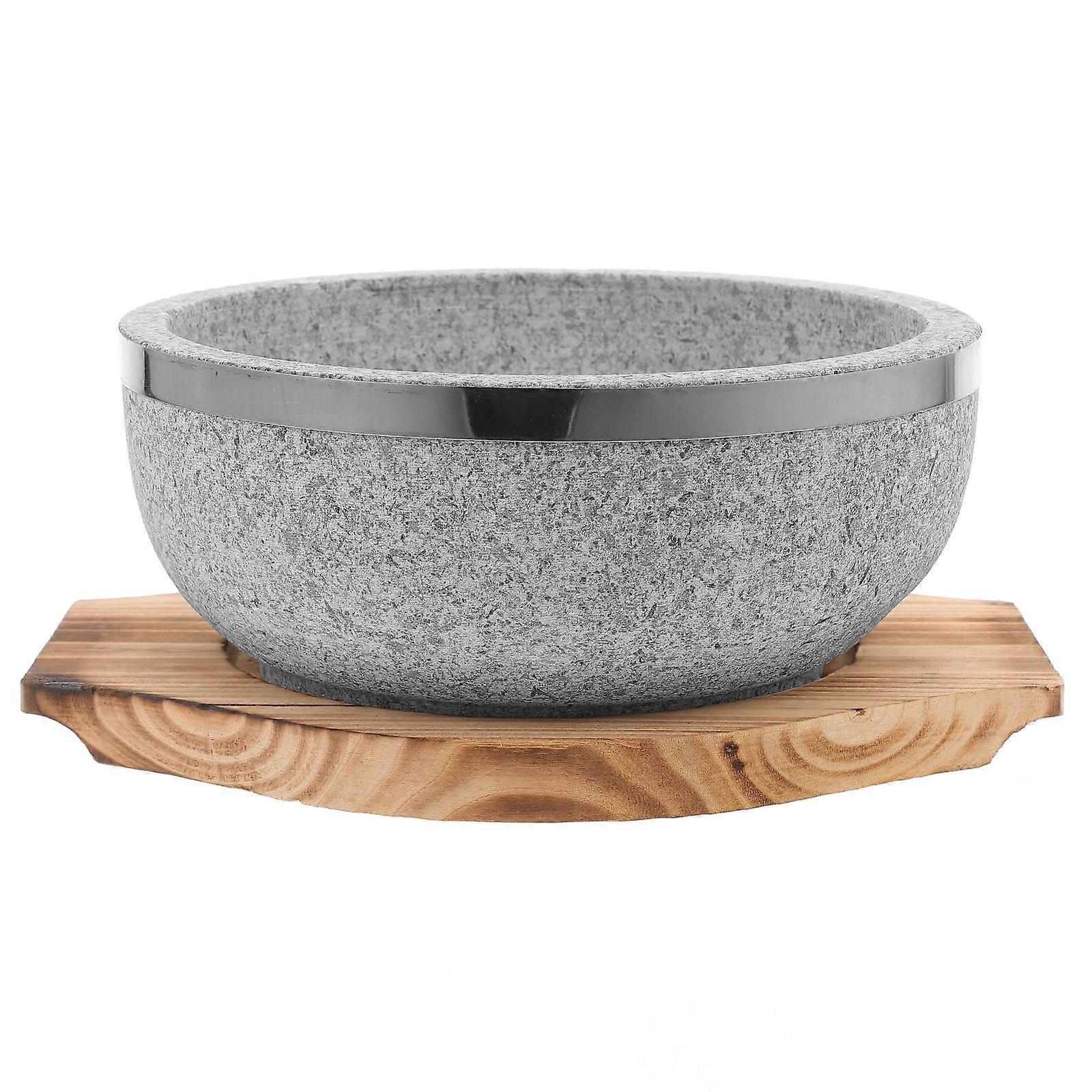 1 Set Stone Bowl No Coating Stone Bowl Korean Cuisine Stone Pot With Wood Base (800ml)