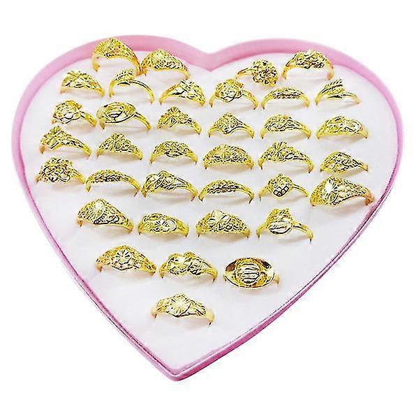 1 Set/36pcs Ring Set Gold Pattern Ring Costume Accessory Creative Adornment Students Accessory With A Box For Girls