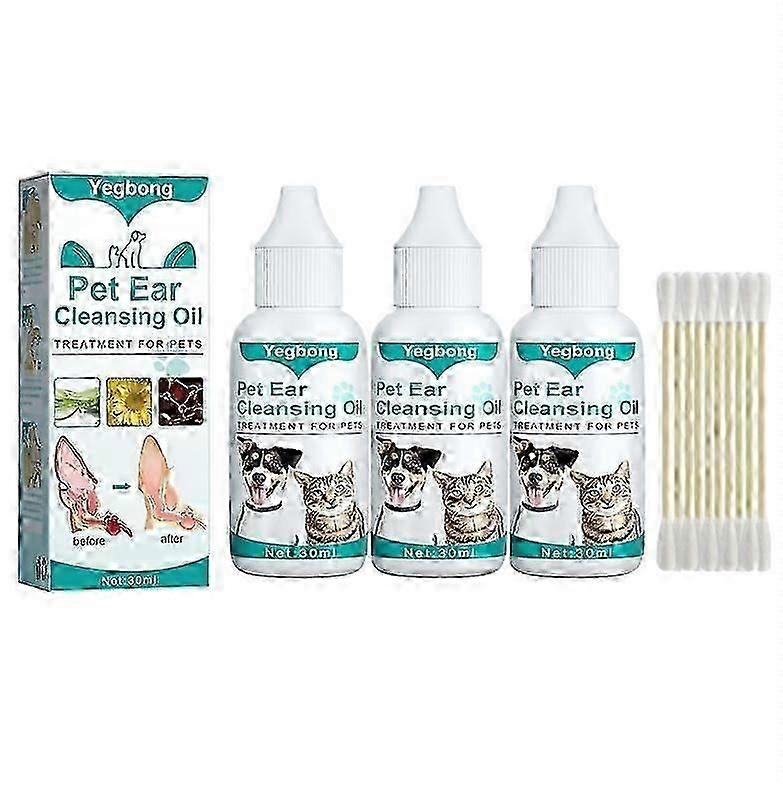 Product Name: Pet Ear Cleaning Oil Net Content: 30ml Storage Method: Store In A Cool And Dry Place Product Function: Clean Ears, Remove Insect Mites, And Deodorize Weight: 46g Applicable Scenarios: Universal For Pets Specifications: 1. Natural Plant Extracts Are Mild And Non-irritating And Protect Pet Ears. 2. Rinse, Remove Wax, Eliminate Itching, Wounds, Odor Imitation, Ear Care 3. Designed For Cleaning And Will Not Harm Pets Fragile Ears 4. Supports Inner Ear Health, Suitable For All Ages, Once Daily Or As Needed 5. No Flushing, Harmless Solution, Soft Dropper Protects Ear Canal From Accidental Damage 6. Residue-free Natural Formula, Fast Soothing, No Stinging Sensation 7. The Soft Dropper Protects The Ears And Is Suitable For Any Pets Ear Canal. 8. Safe, Odorless And Easy To Use After Licking Package Included: 1/2/3 Bottles* (1 Pet Ear Cleaning Solution)