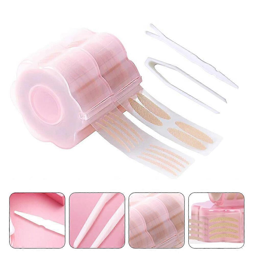 1 Set of Traceless Double Eyelid Tapes with Fork Tweezer Beauty Eye Patch (Pink)