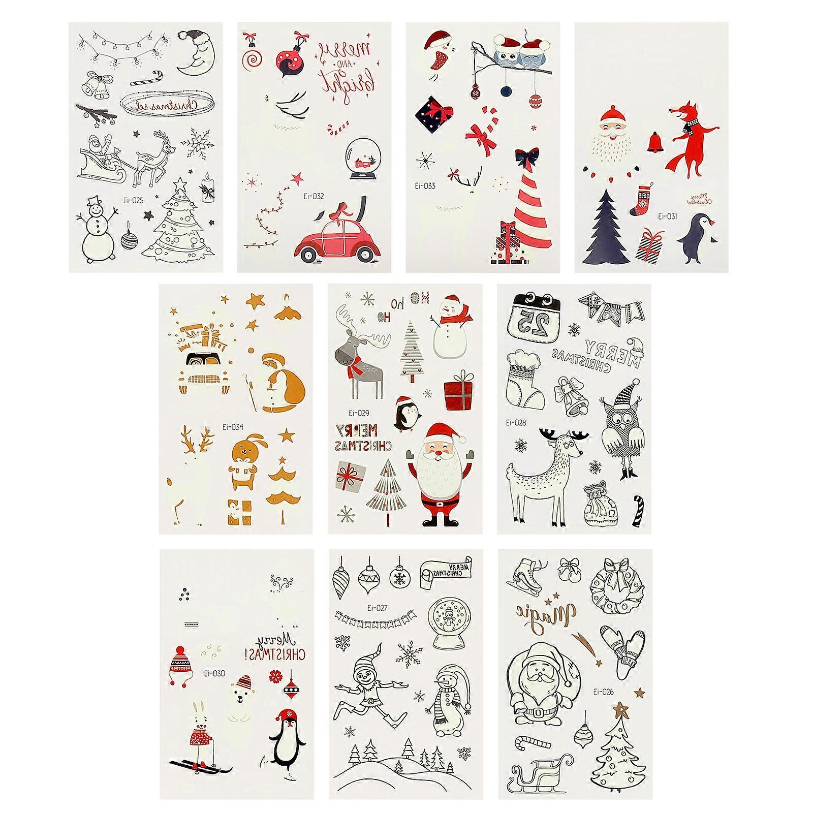 10 Sheets Christmas Tattoos Sticker Luminous Santa Claus Tattoos Sticker