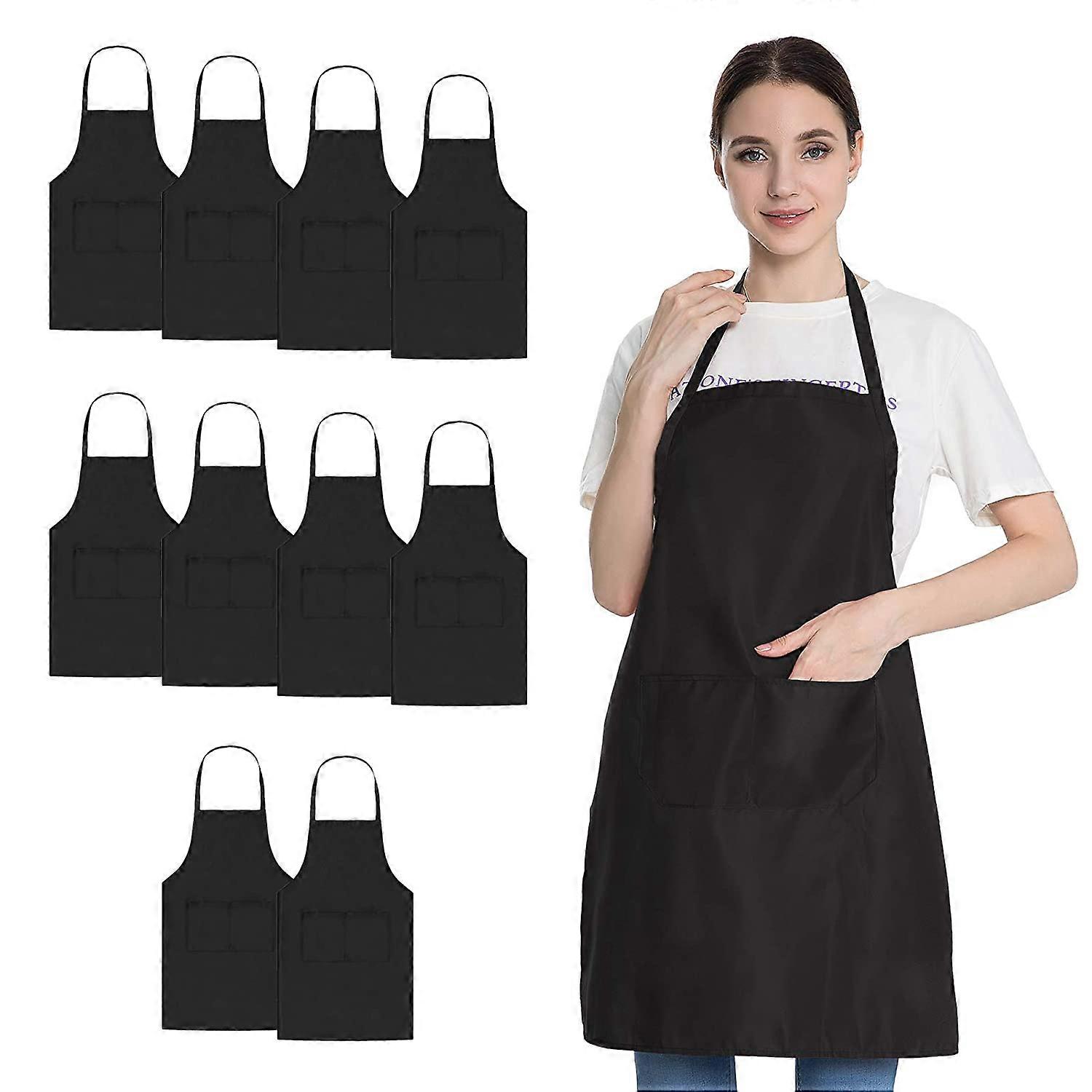 10 Pack Plain Bib Aprons With 2 Pockets -black Unisex Commercial Apron Bulk For Kitchen Cooking Restaurant Bbq Painting