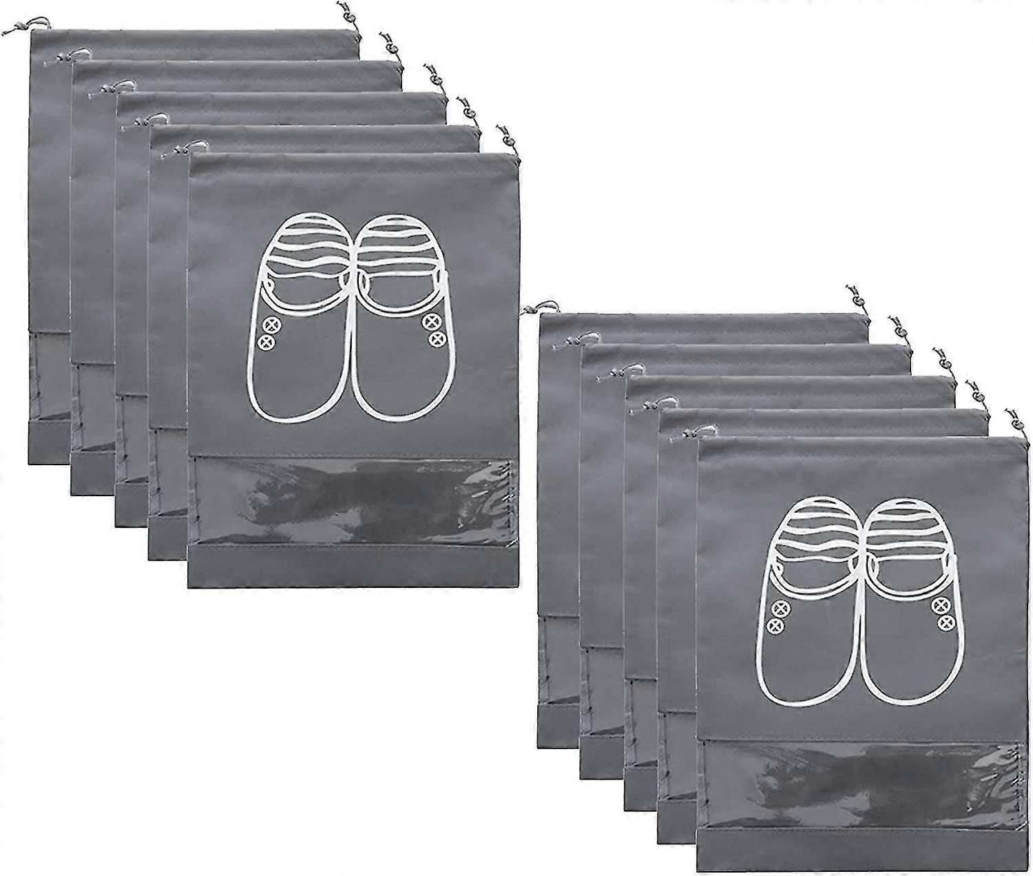 10 Travel Shoe Bags, Large Drawstring Portable Storage with Transparent Window, Space-Saving