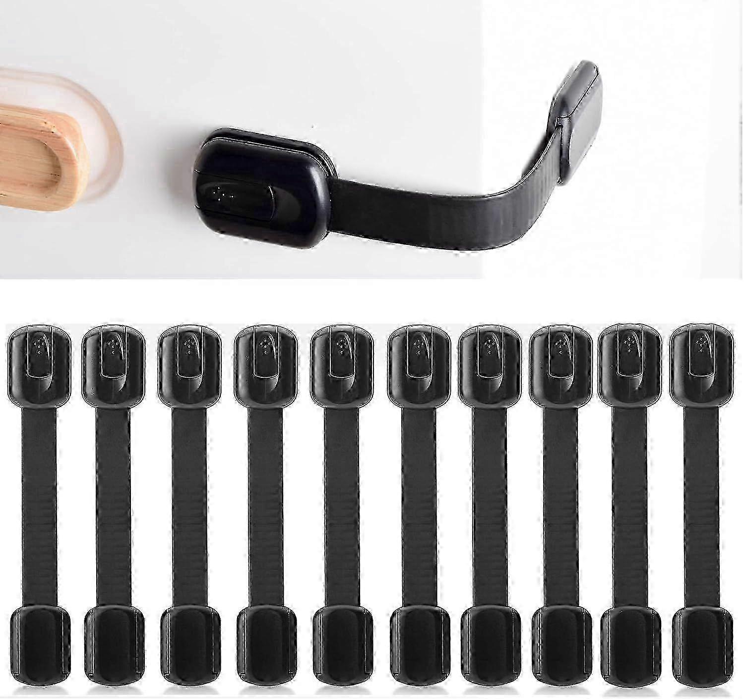 10 Pack Child Locks for Cabinet and Drawers, Baby and Child Safety Drawer Locks for Door, Cupboard, Refrigerator, No Drilling - Black