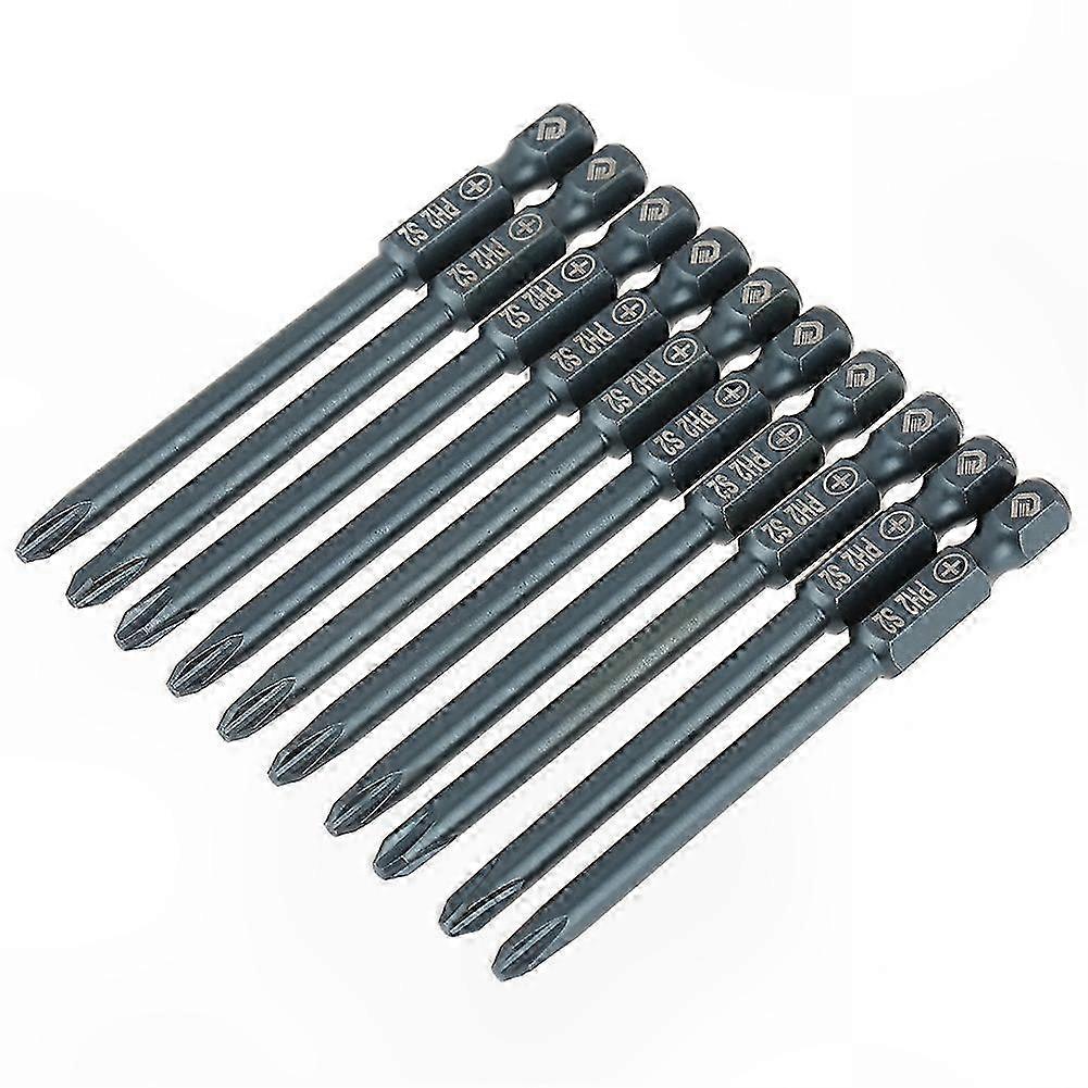 10-Pack PH2 Cross Head Screwdriver Bits, S2 Steel, 1/4" Hex Shank, 75mm Length