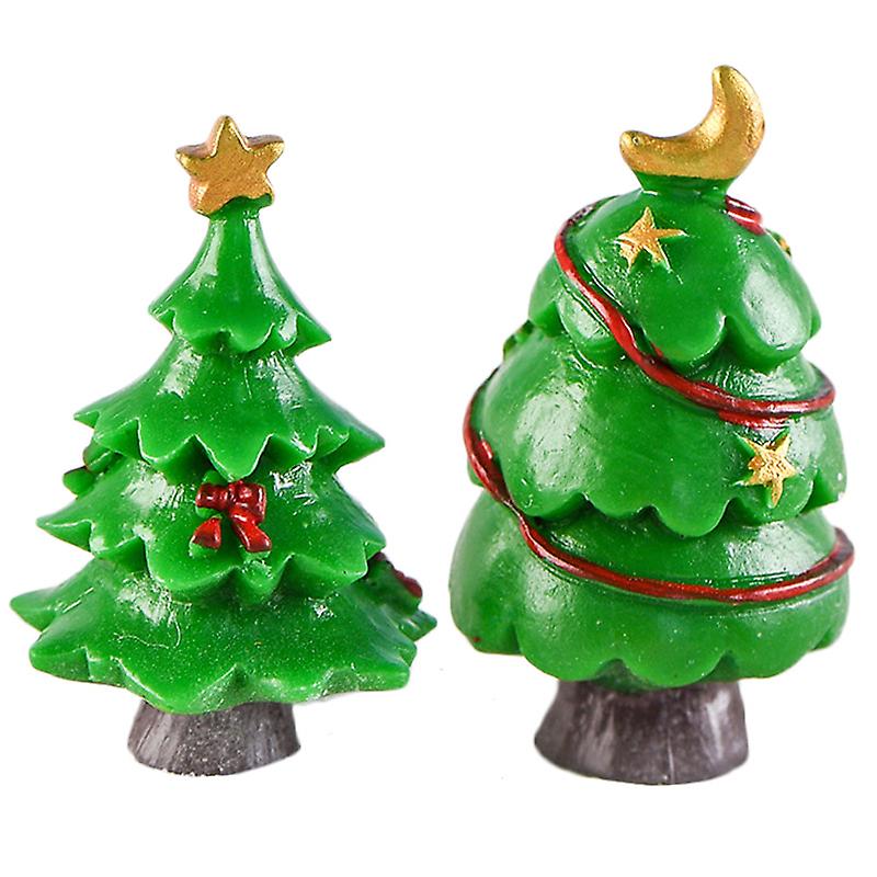 10pcs Resin Ornaments Decorations Green Christmas Tree With Star Moon Furnishing Articles Garden Decor Figurines Miniatures