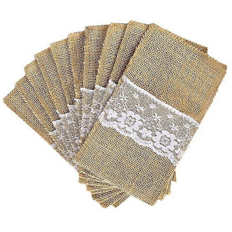 10pcs Burlap Tableware Utensil Holders Burlap Lace Silverware Holder Linen Knife And Forks Cutlery Pouch Bag