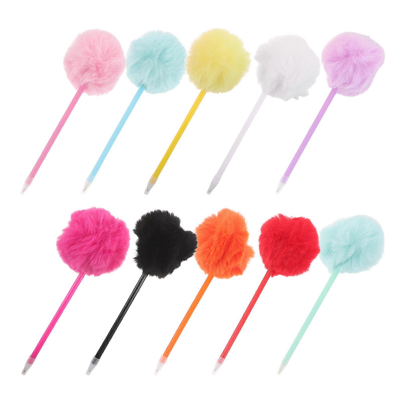 10pcs Creative Plush Pen, Colorful Pom Pom Ballpoint Pen, Novelty Fluffy Stationery for Office & Writing, Plastic Decorative Pen
