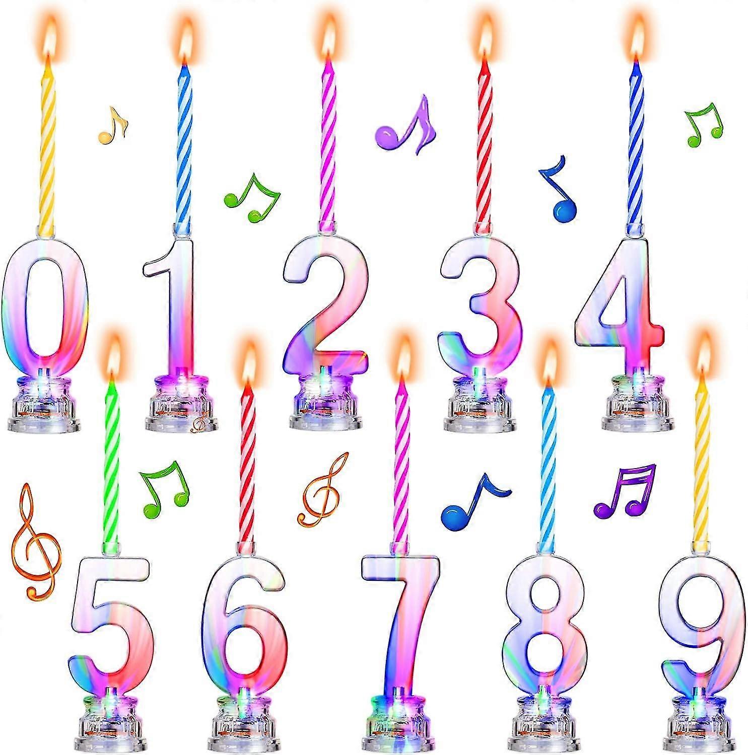 10 Pieces Musical Birthday Candle LED Birthday Number Candle Set Multicolor Flashing Cake Candles with Music Sound and 20 Pieces Wax Candles for Birth