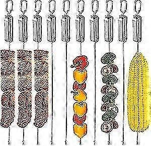 10pcs Bbq Skewers, Reusable Steel Kabob Skewers For Barbecue Grilling With Metal Sliding Handle For Oven Meat Shish Chicken Vegetable