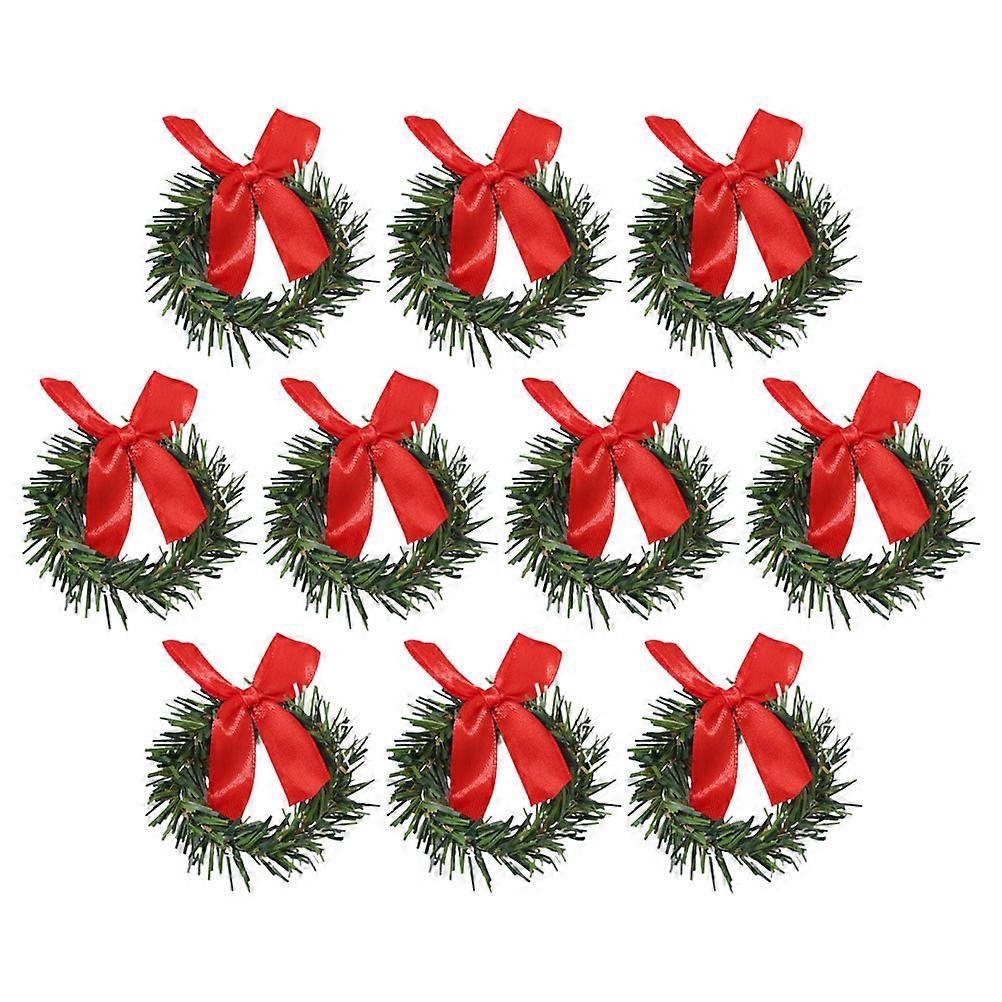 10pcs Mini Christmas Wreaths Artificial Christmas Candle Pine Needle Wreaths