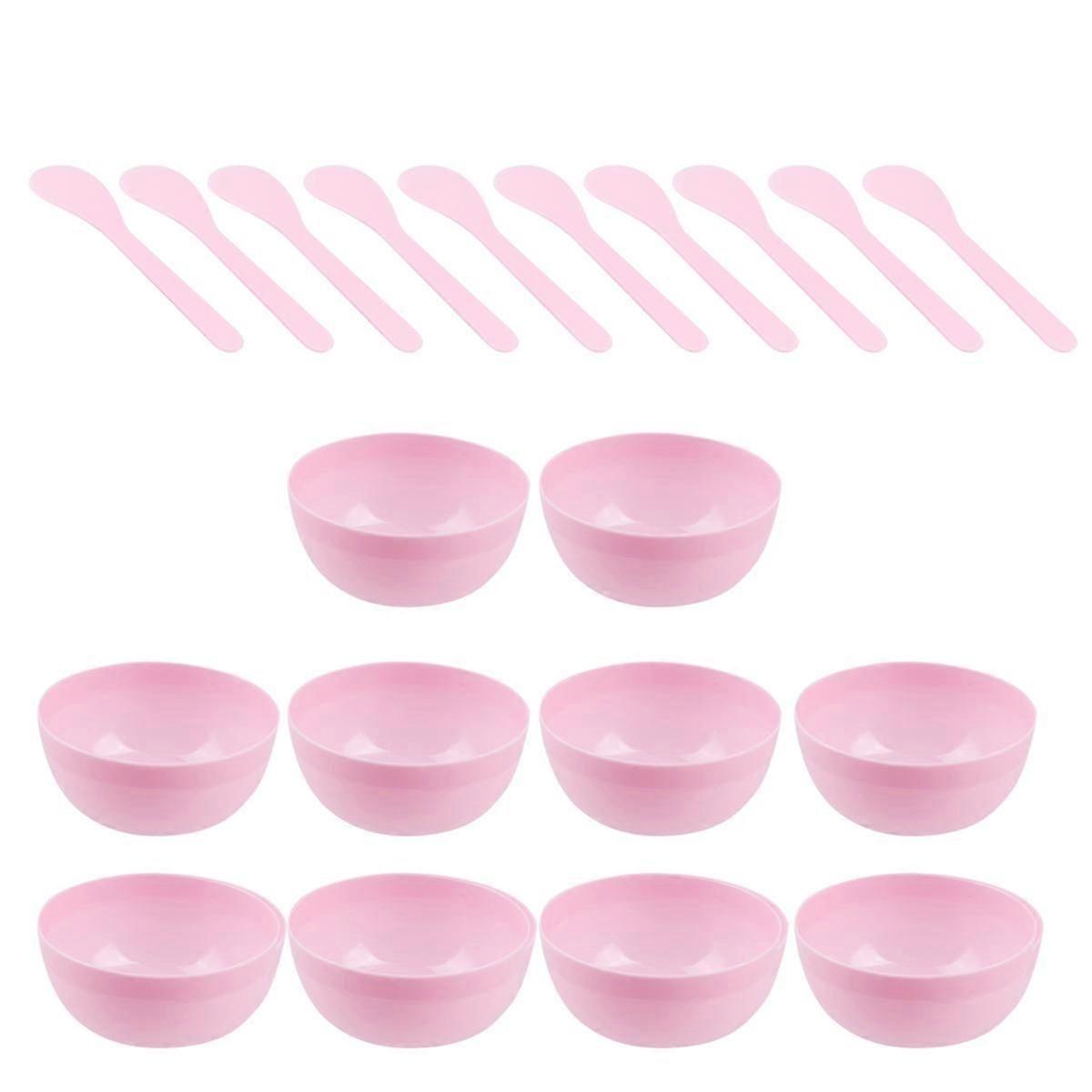 10pcs Crystal Mud Mixing Bowls Multi-use Plastic Bowls DIY Crystal Soil Supplies for Kids Girls with 10pcs Spoons (Pink)