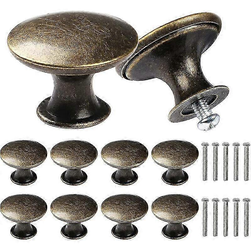 10 Pcs Antique Round Drawer Pulls 30mm Bronze Cabinet Knob for Dresser Cupboard with Screws GIJ