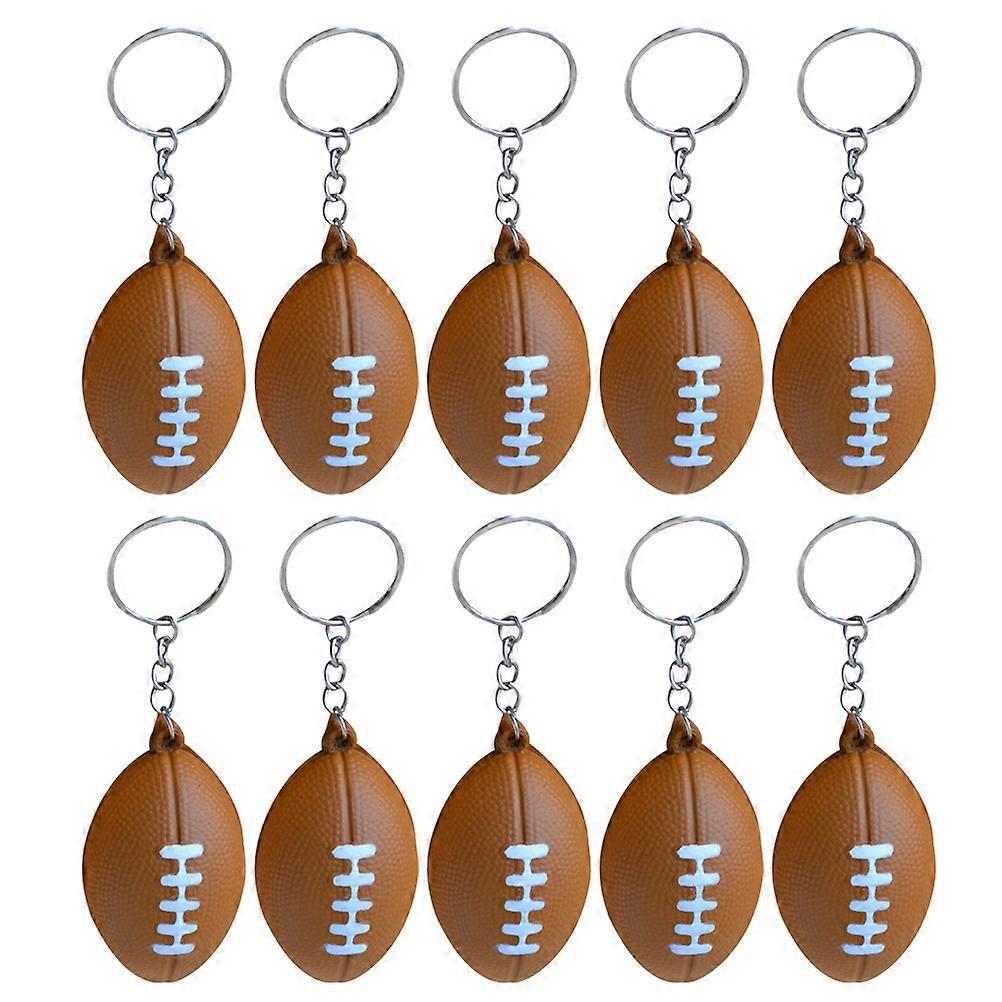 10PCS American Football Keychains Rugby PU Keyring Souvenirs Pendants Toys for Kids (Brown)