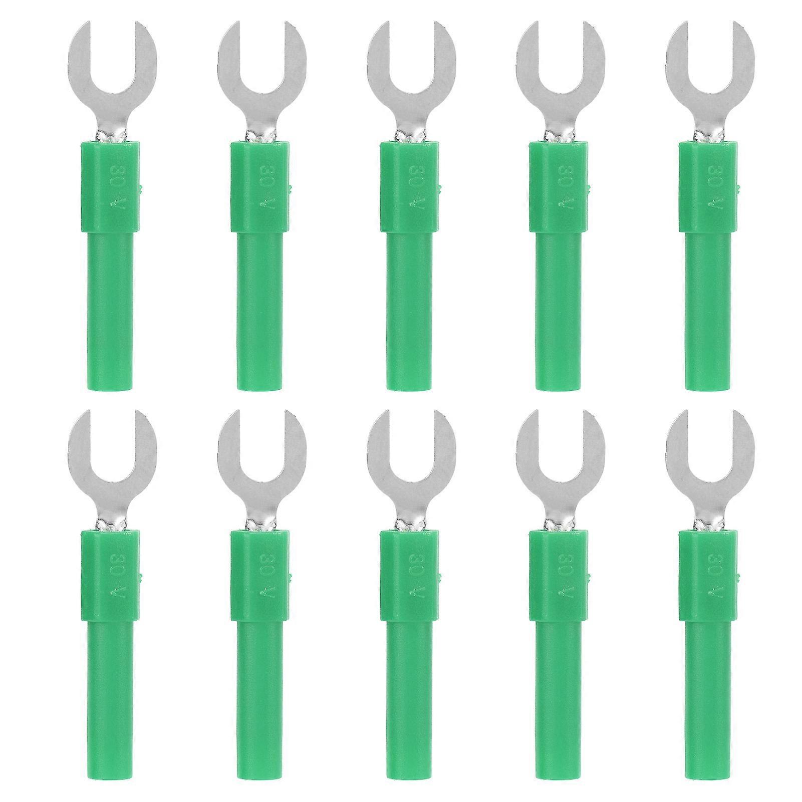 10pcs Fork Spade Wire Connectors Brass Material 6mm/0.2in Y Type 4mm/0.2in Hole Banana Plug 30Vac?60Vdc Maximum.10AGreen