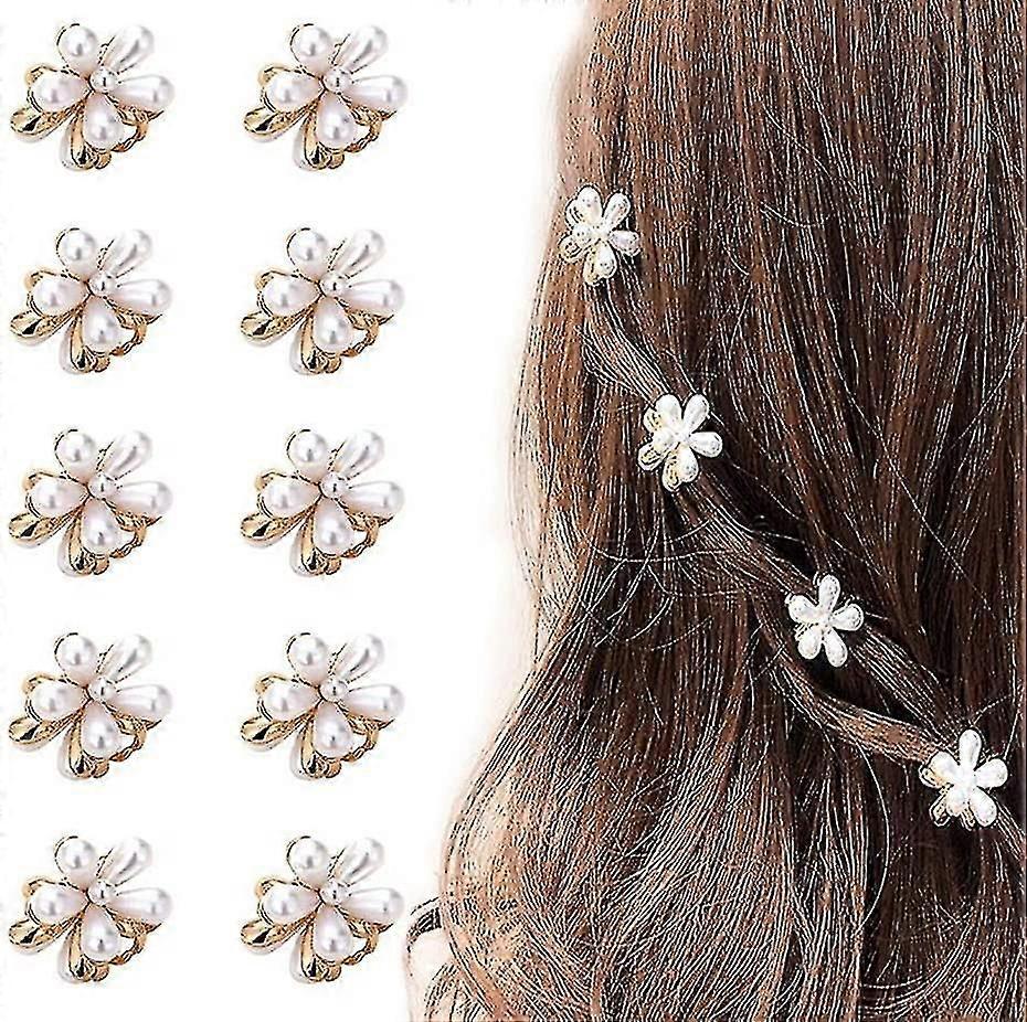 10 Pcs Small Pearl Hair Claw Clips Mini Pearl Claw Clips With Flower Design A