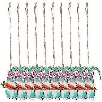 10pcs Easter Themed Party Hanging Decors Wooden Cartoon Gnome Cutouts Pendants