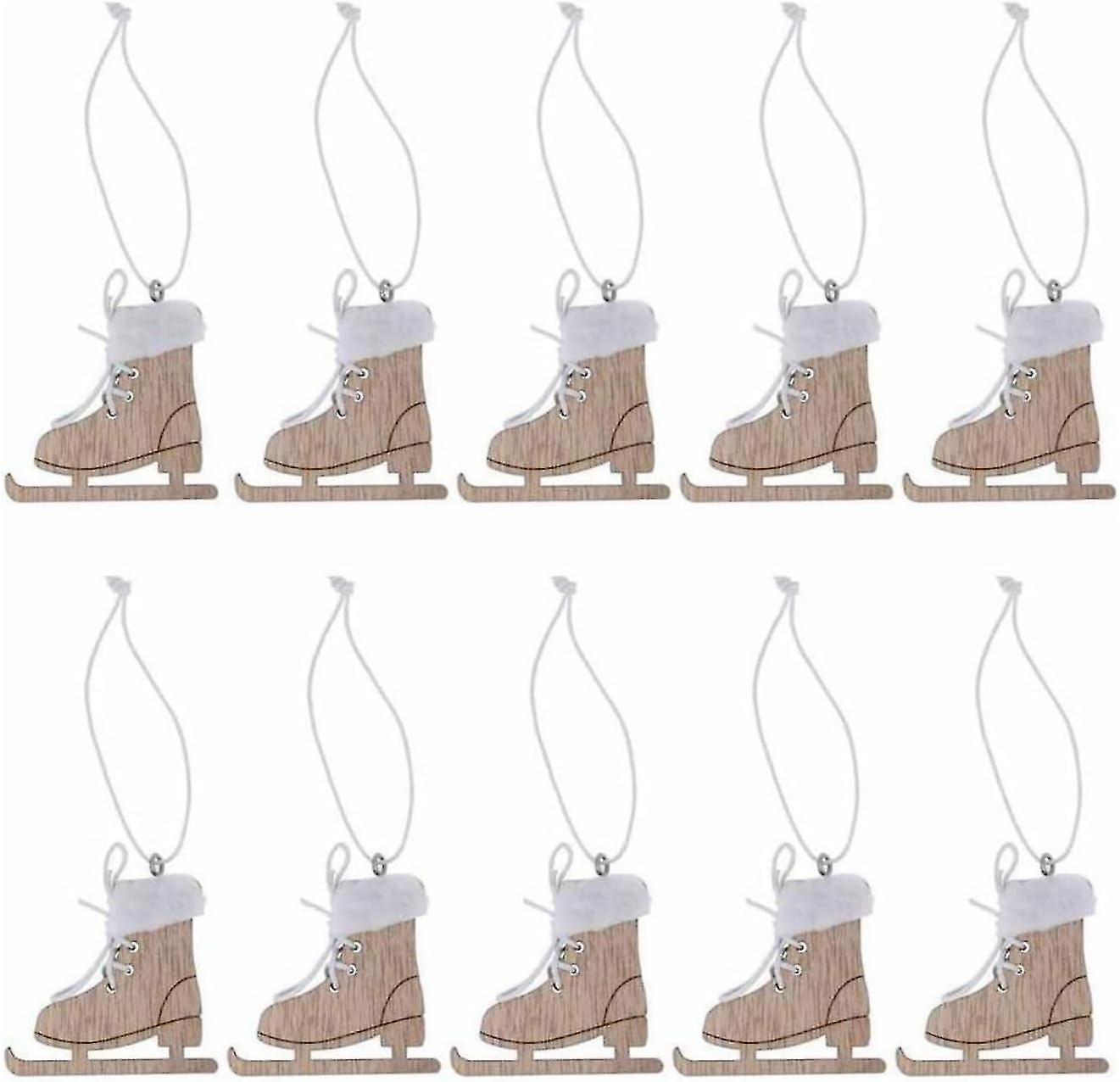 10Pcs Christmas Wooden Hanging Ornaments Xmas Tree Hanging Tags Decorations Unfinished Wooden Slices Christmas Holiday Decoration Wood Craft Pendant (